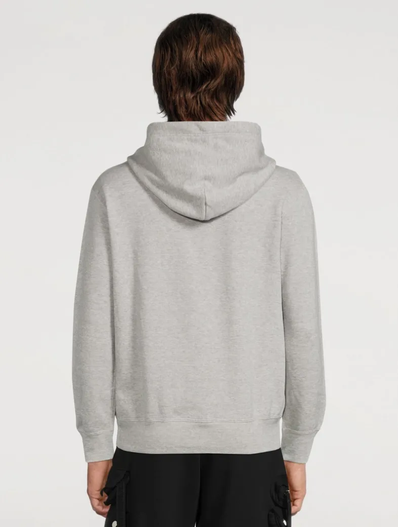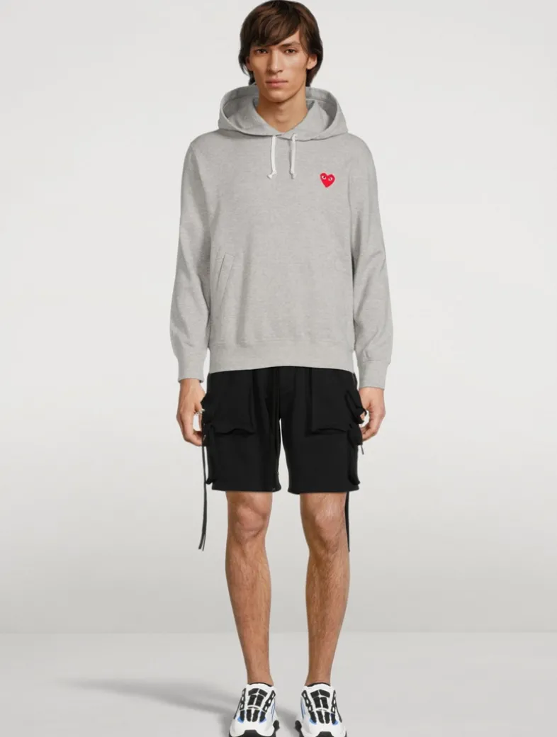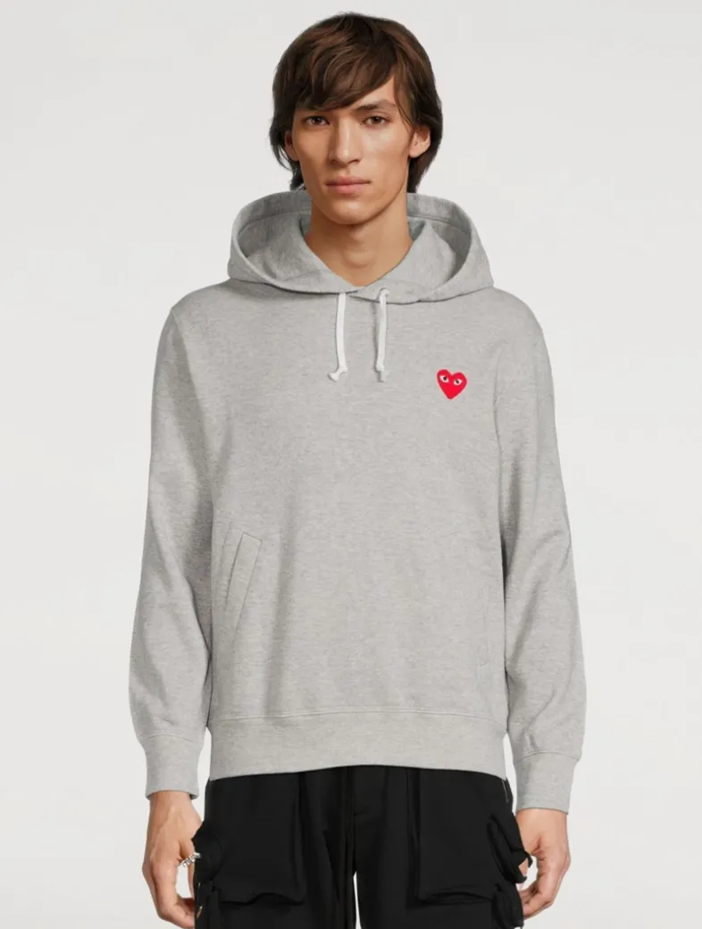 Pullover sweatshirt with welt pockets featuring signature heart patch at chest.