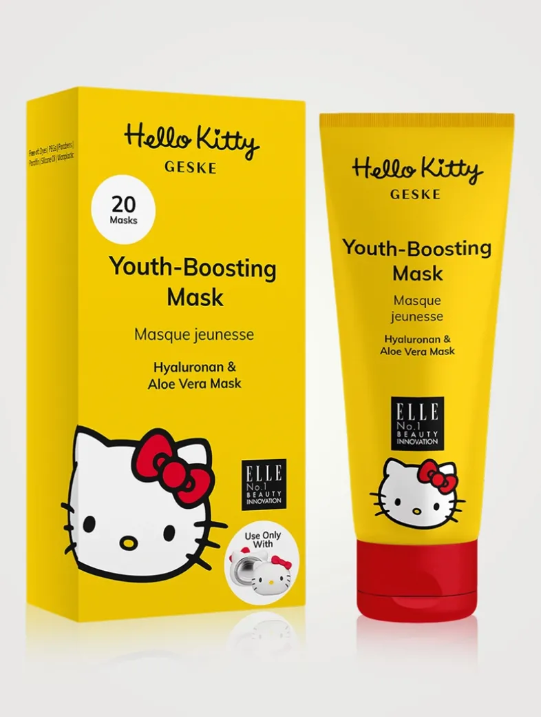 Stop aging in its tracks and unveil magically youthful skin with this sensational Youth Boosting Mask. Enriched with hydrating, anti-aging ingredients like hyaluronic acid and aloe vera, the mask in charming Hello Kitty packaging nourishes your skin from deep within and gently erases signs of age. To get the most out of your mask, download the GESKE German Beauty Tech App, where you can perform an instant Skin Scan using our proprietary AI technology, the results of which are used to generate your own personalized Skincare Routine, and browse through thousands of expert training videos for GESKE smart masks. The Youth Boosting Mask is fortified with everything you need for a glowing, fresh complexion. Try it for yourself and revel in the newfound radiance of your beautiful, youthful skin.