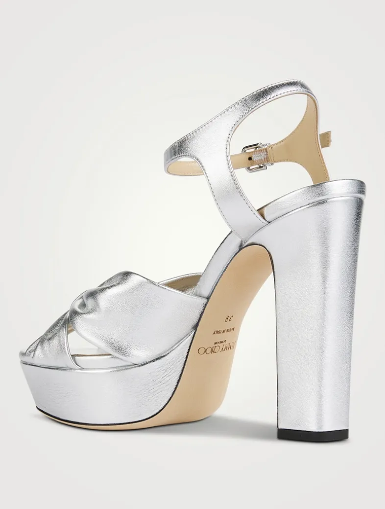 Elevate the everyday with JIMMY CHOO’s Heloise platform sandals. Made in Italy from soft mirror leather, they have a retro-inspired silhouette that’s set on a 120mm block heel, and feature feminine knotted straps that cross over the toes.