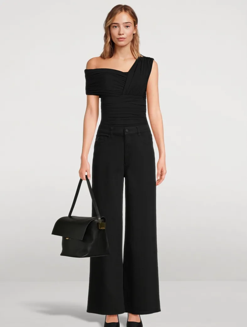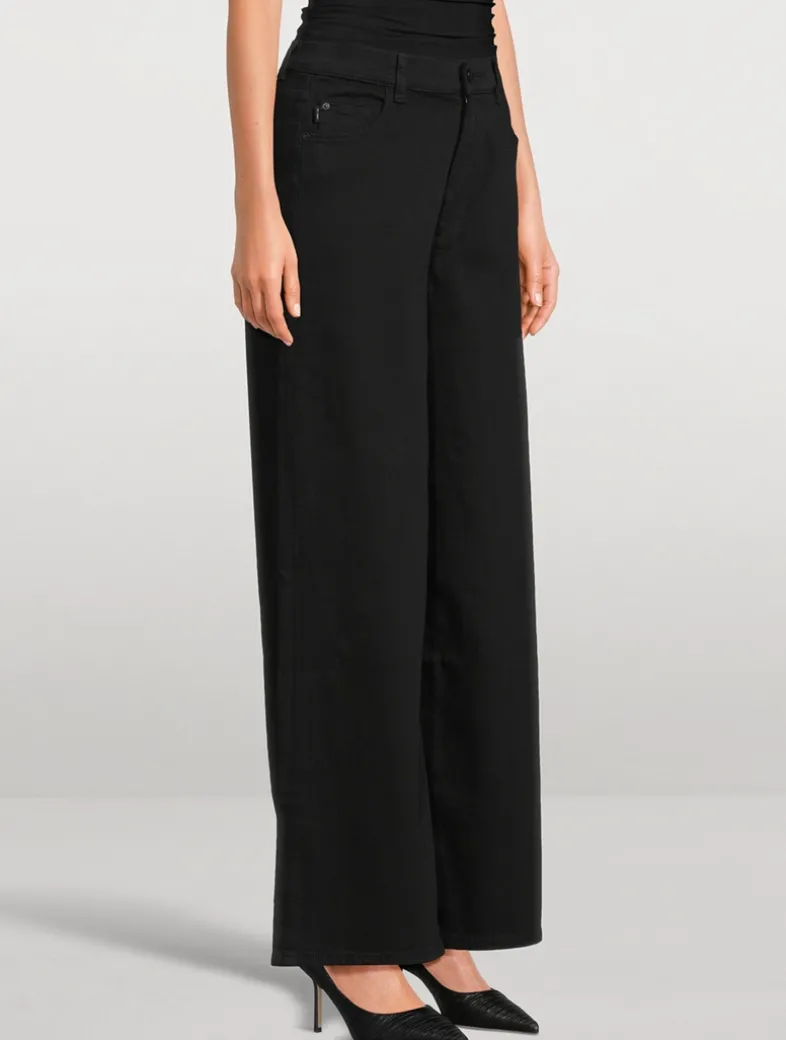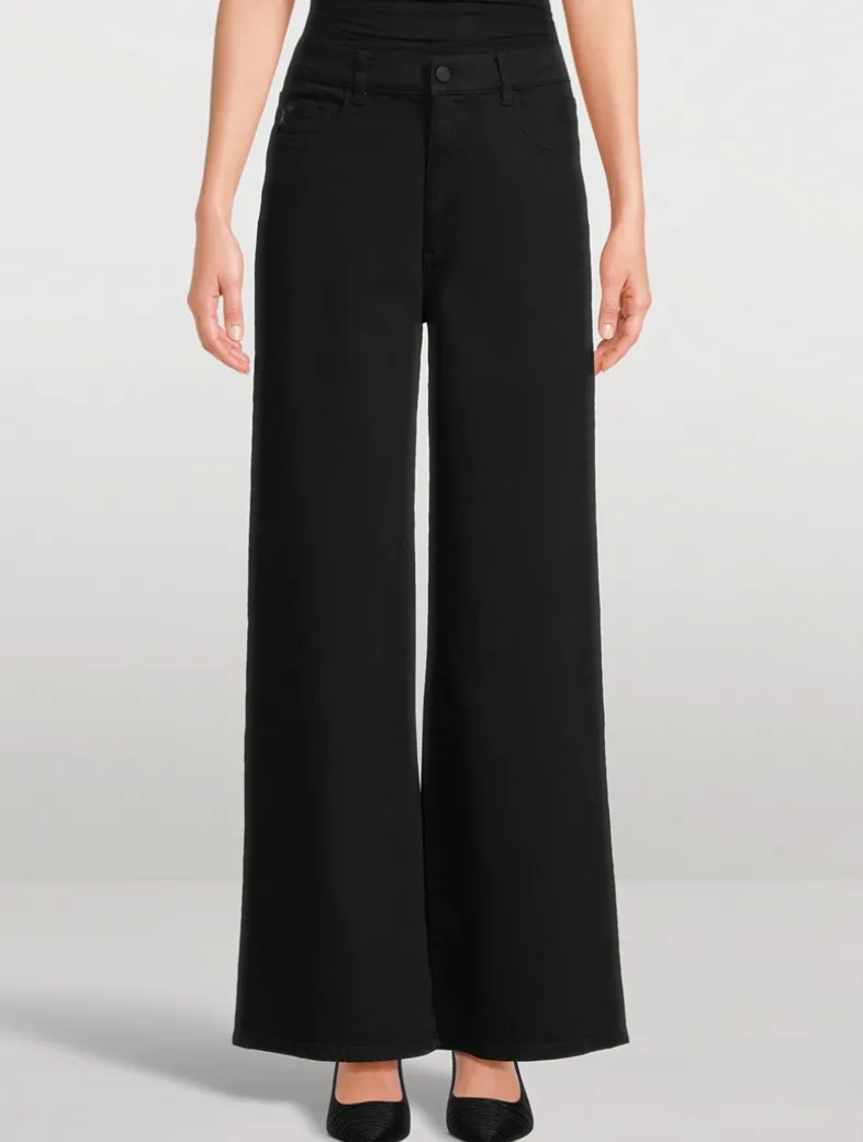 Hepburn is a vintage high-rise that is fitted through the waist and seat, tapering outward from the thigh for a wide leg with a 32