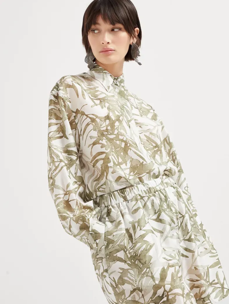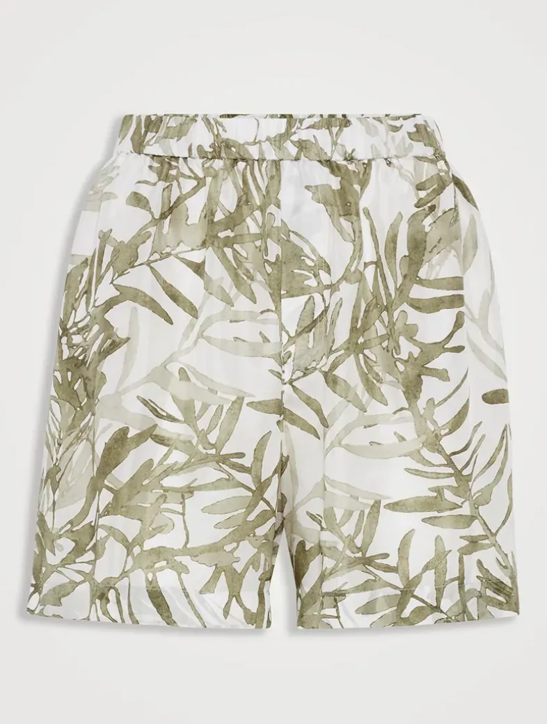 Silk herbarium print pongee track shorts
