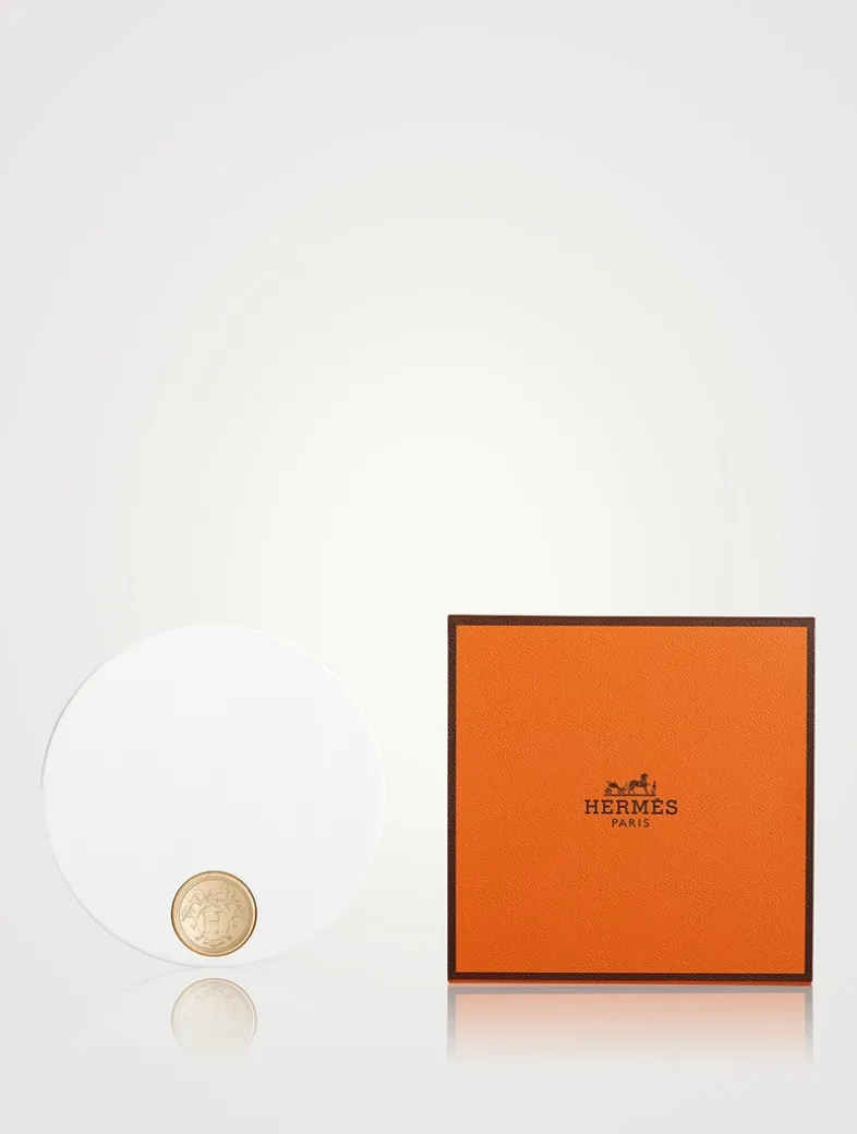 Beauty in the open air with the H Trio mineral powders. Inspired by three of nature’s elements – air, sun and earth – the iridescent mineral powder leaves a shimmering finish on the skin. Its high concentration of mother-of-pearl creates a multifaceted iridescent finish. Light is perfectly diffused through this elegant prism of pink or coral hues, and the skin glows with a new, natural radiance. Each harmony evokes the colour palette of one of the world’s landscapes. Rose Atacama: the sand and rock of the Chilean desert illuminated by rare and unexpected blooms, captured in an iridescent palette with a rosy sheen. Composed of 88% ingredients of natural origin, the iridescent mineral powder has an exceptional sensory quality derived from technology that produces the softest and finest possible particles of powder. Its iridescent texture enhances natural beauty and cares for the skin thanks to a hyaluronic acid derivative. The iridescent mineral powder is suitable for all skin types, even the most sensitive. With its round case, this white and gold disc of light designed by Pierre Hardy is remarkable for its generosity. The compact powder bears a pattern of fine lines evoking silk twill, overlaid by the emblematic H passant motif. The iridescent mineral powder case can be refilled by simply removing and replacing the powder compact. Refills are sold separately.