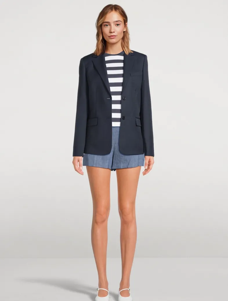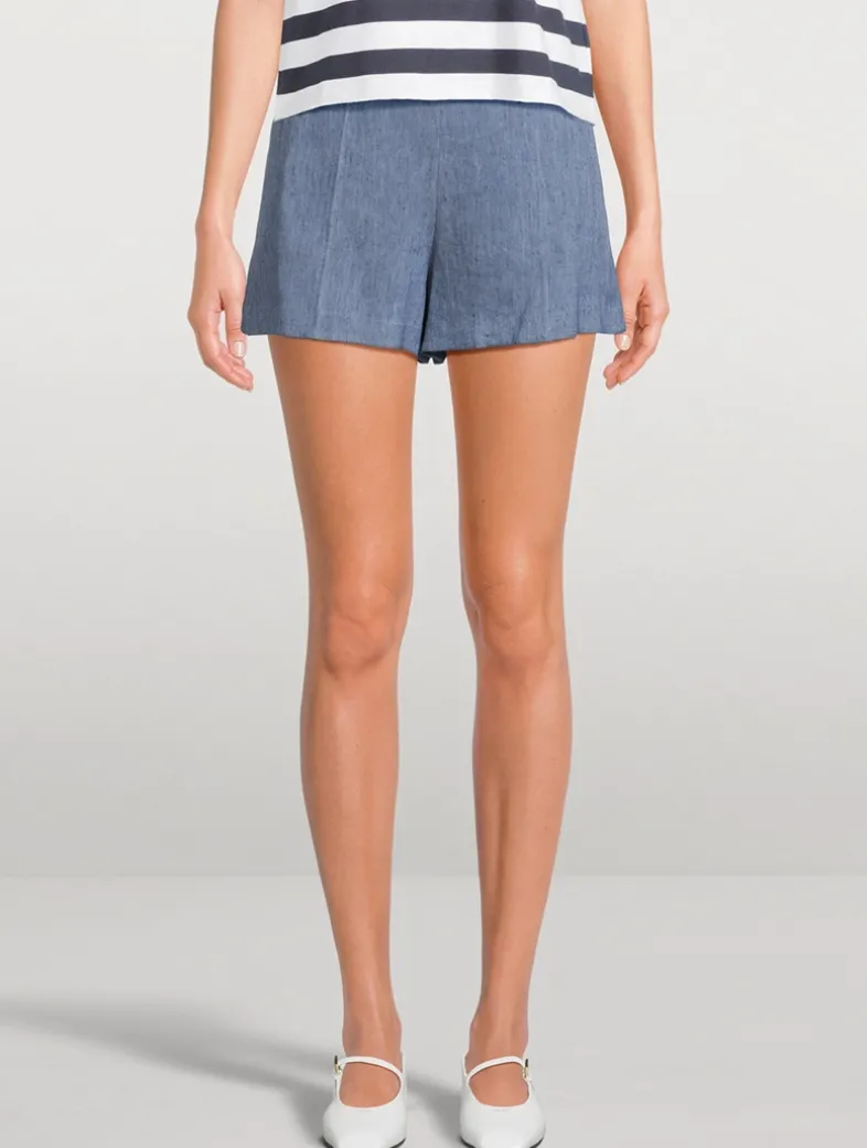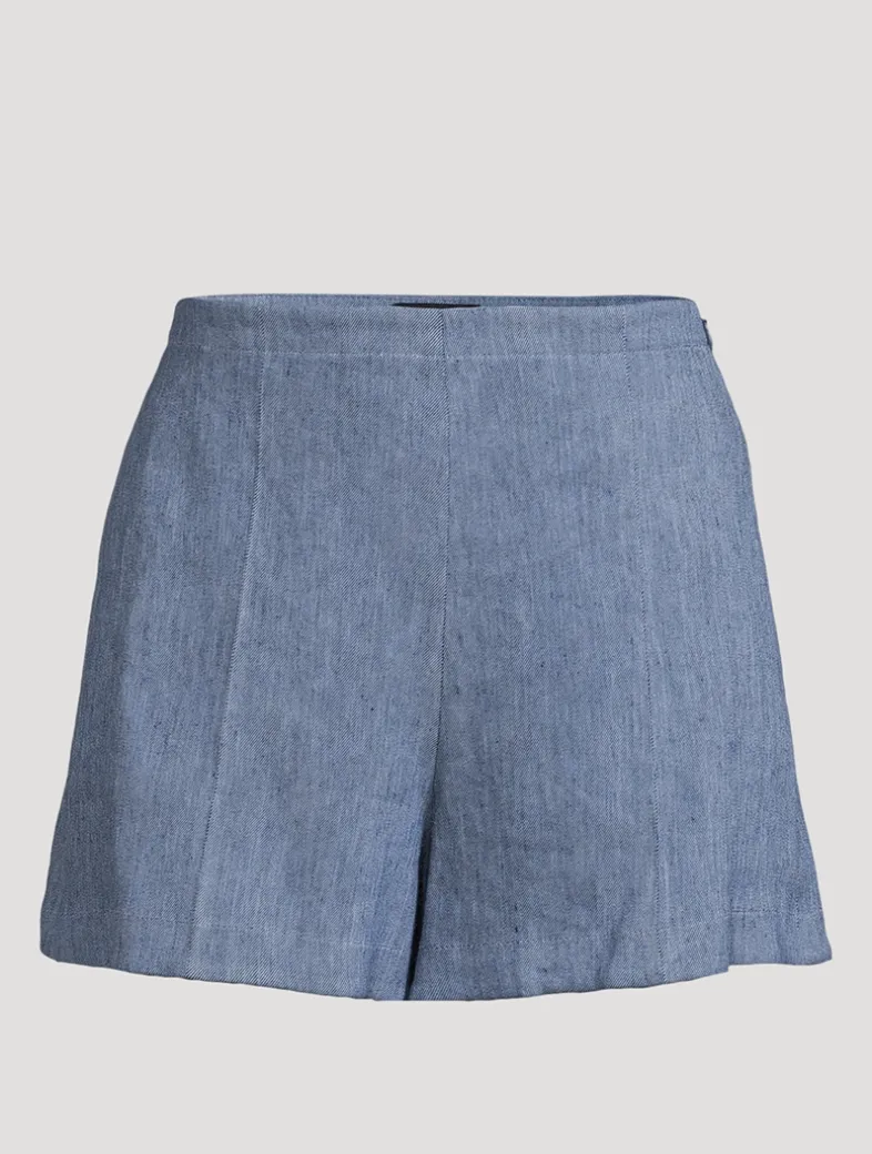 These clean shorts are designed with a side zip closure, on seam pockets, welt pockets at back, and crisp seamed creases at the front and back.