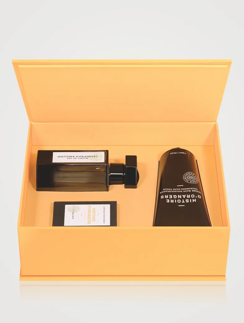 The orange tree comes to life as the sun sets. Its citrus note, warmed by the burning sun, blends with the gentle, honeyed aromas of orange blossom. Discover its scent in this three-piece gift set.