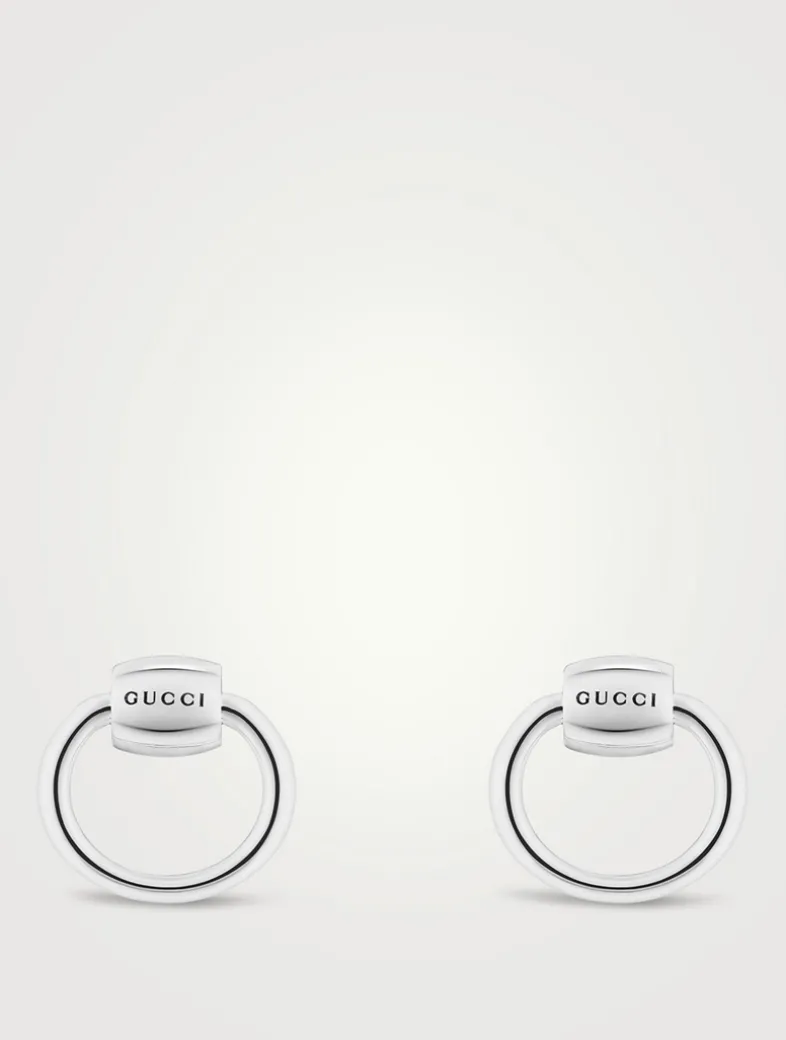 For pierced ears, this pair of earrings features two large hoops that recall the structure of the signature Horsebit emblem. The signature Gucci engraving completes the design.