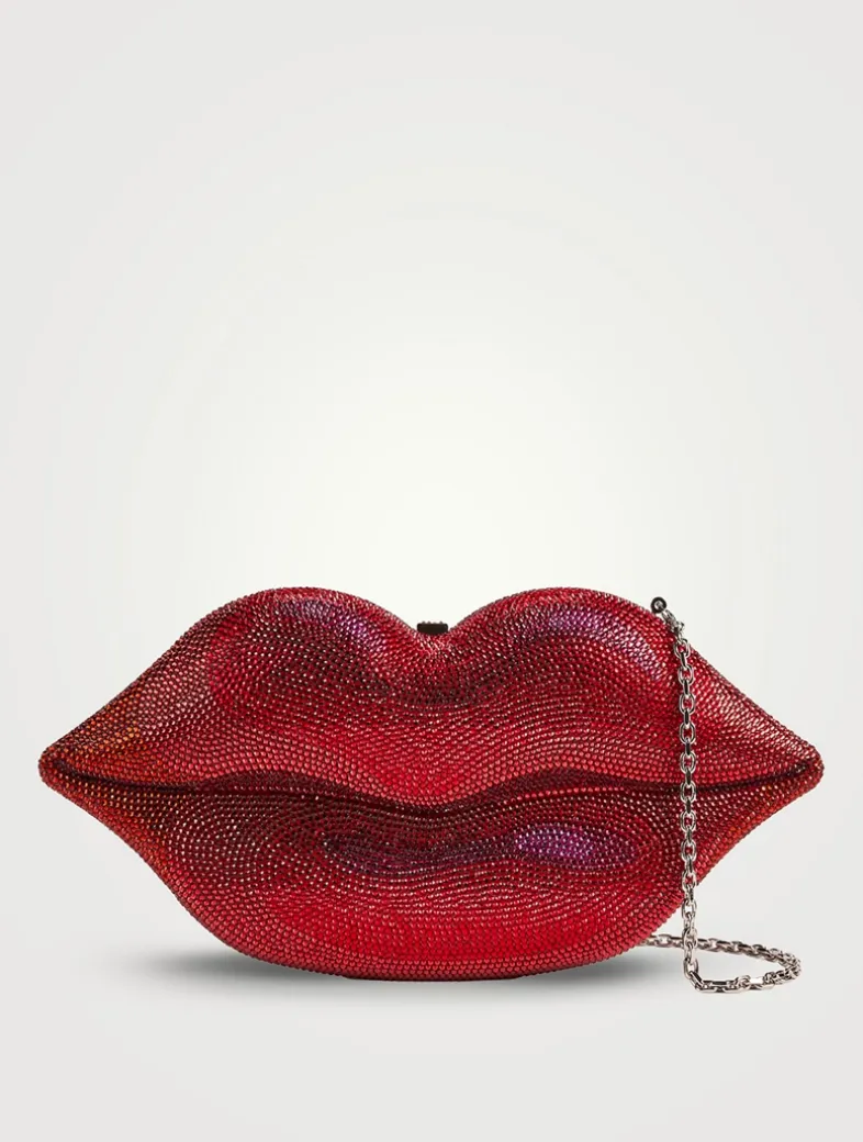 Prepare for a ravishing rendezvous with the Hot Lips clutch. Adorned with dazzling handset crystals, this bag is made in Italy and features a metallic leather interior and a removable shoulder chain.