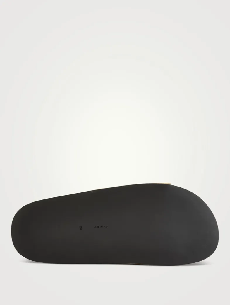 These flat slip-on sandals are made in Italy from soft calfskin suede with a contoured footbed and a rubber sole.