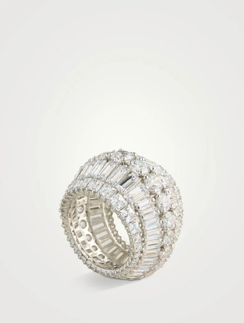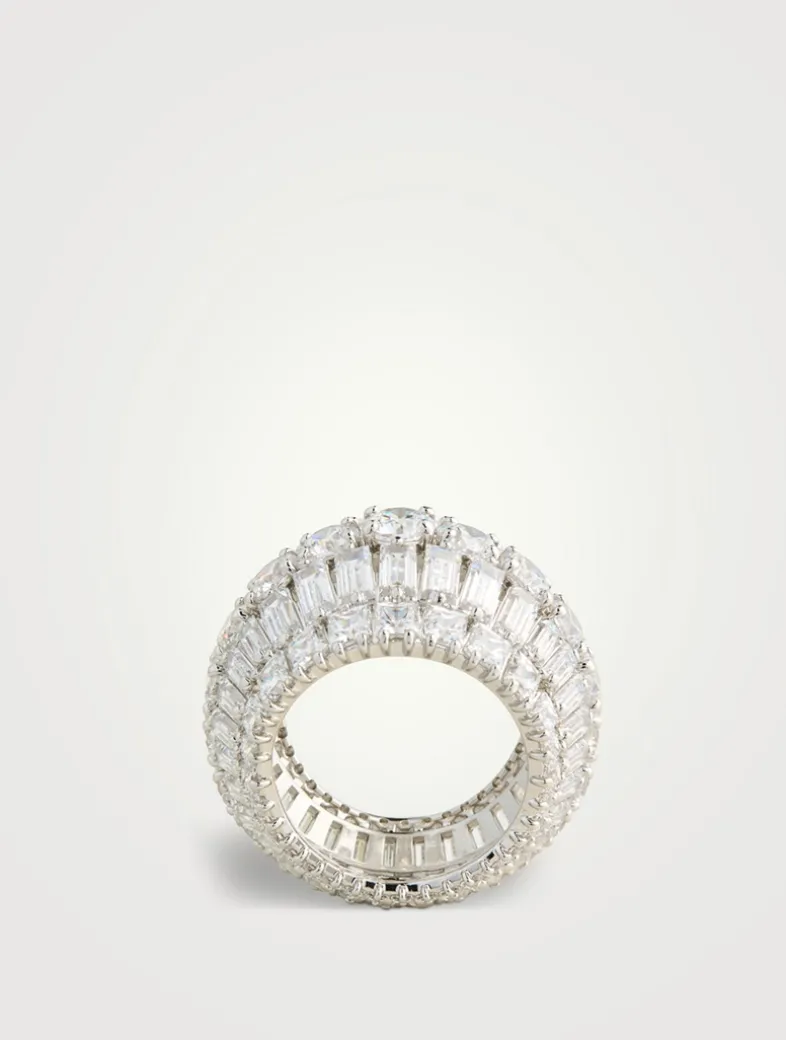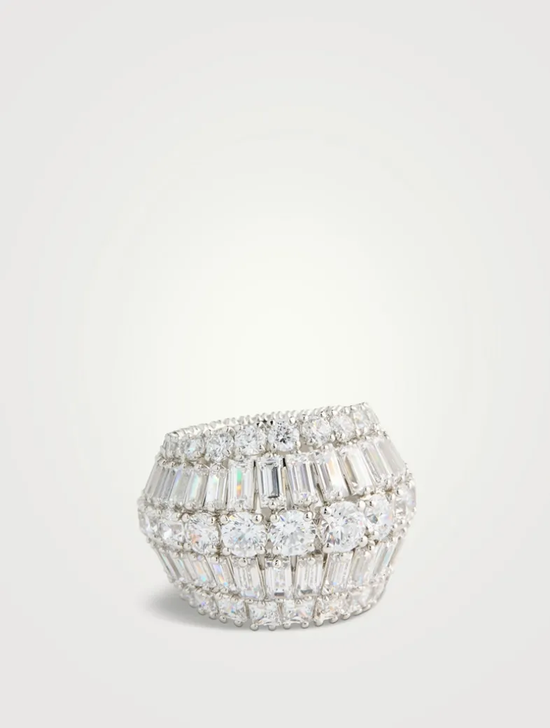 Designed to spellbind with its daring three-dimensional shape, this cocktail ring makes a sculptural statement. Expertly crafted from step cut and brilliant cut clear stones, it is part of the Hyperbola family, designed by Creative Director Giovanna Engelbert for Collection I.