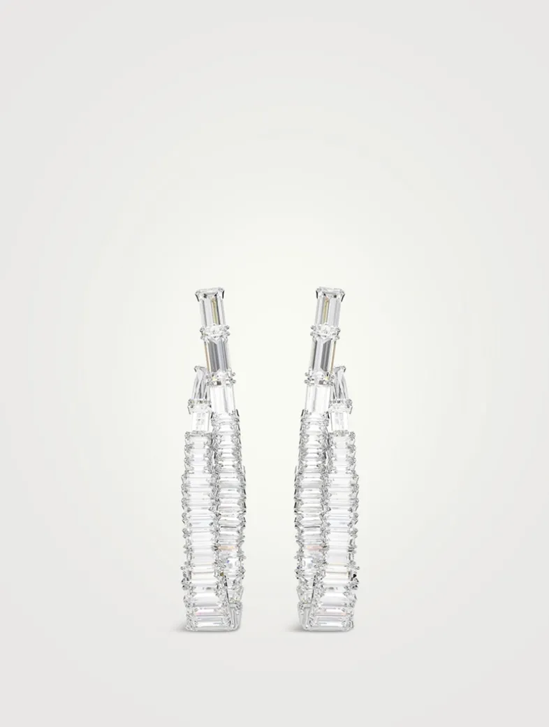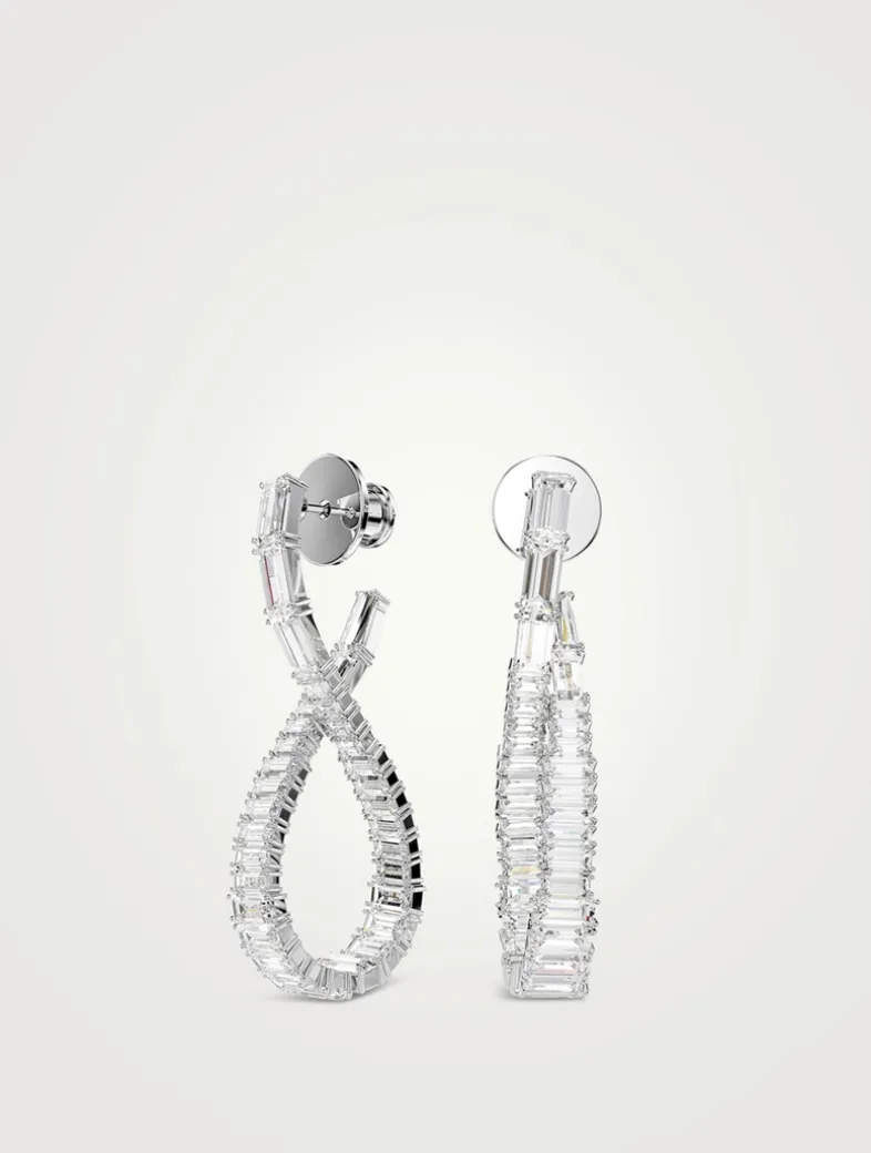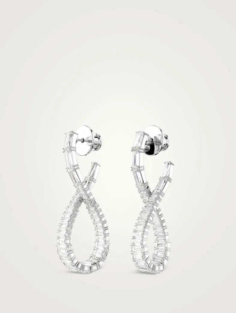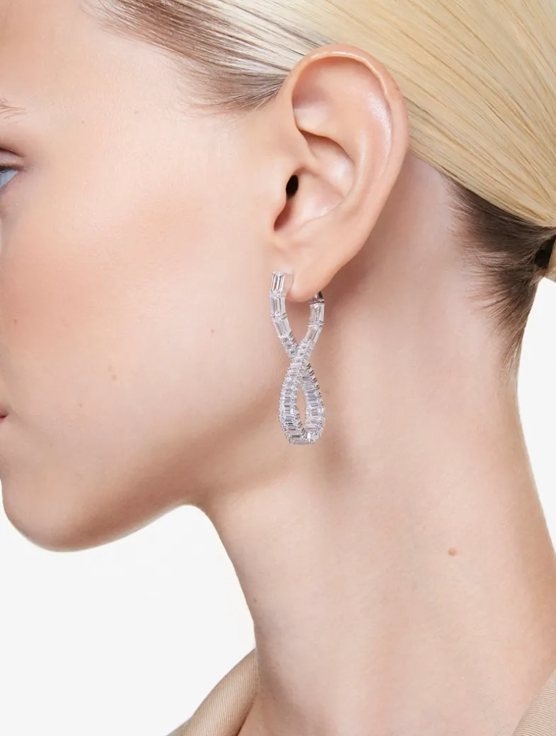 Inspired by the shape of an infinity motif, these striking Hyperbola earrings exude endless beauty. Each rhodium-plated piece is crafted with a slender twist and adorned with an array of clear Swarovski Zirconia in mixed cuts.