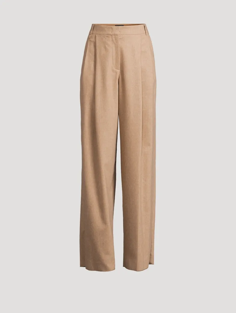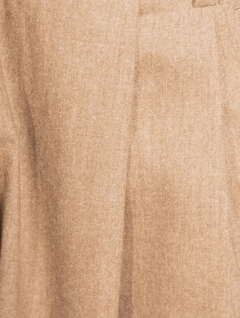 These pleated trousers are made of a virgin-wool flannel with a small percentage of cashmere that enhances its smooth feel. The pleats create a sophisticated vertical crease along the wide leg. This garment is part of the Icon capsule collection.