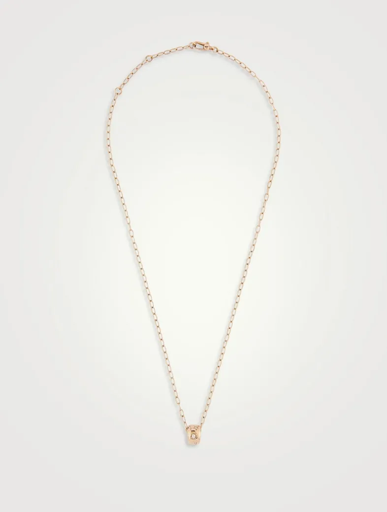 A tribute to Pomellato’s goldsmith heritage, this chain necklace features an Iconica pendant in 18k rose gold with six white diamonds in geometric settings.