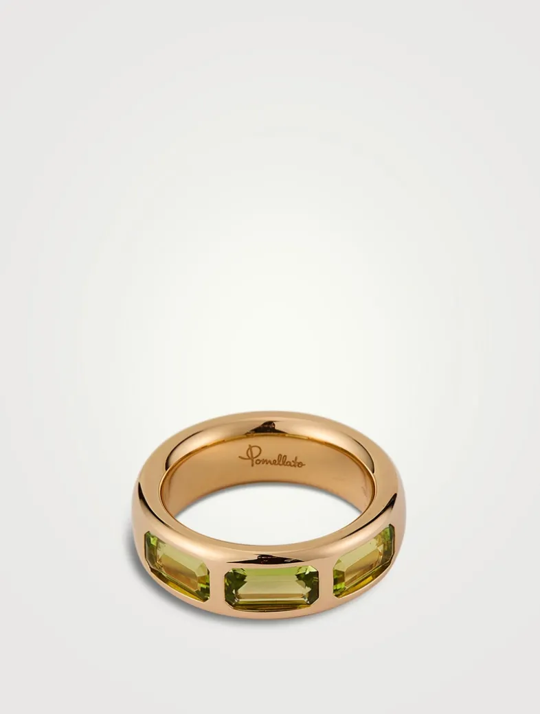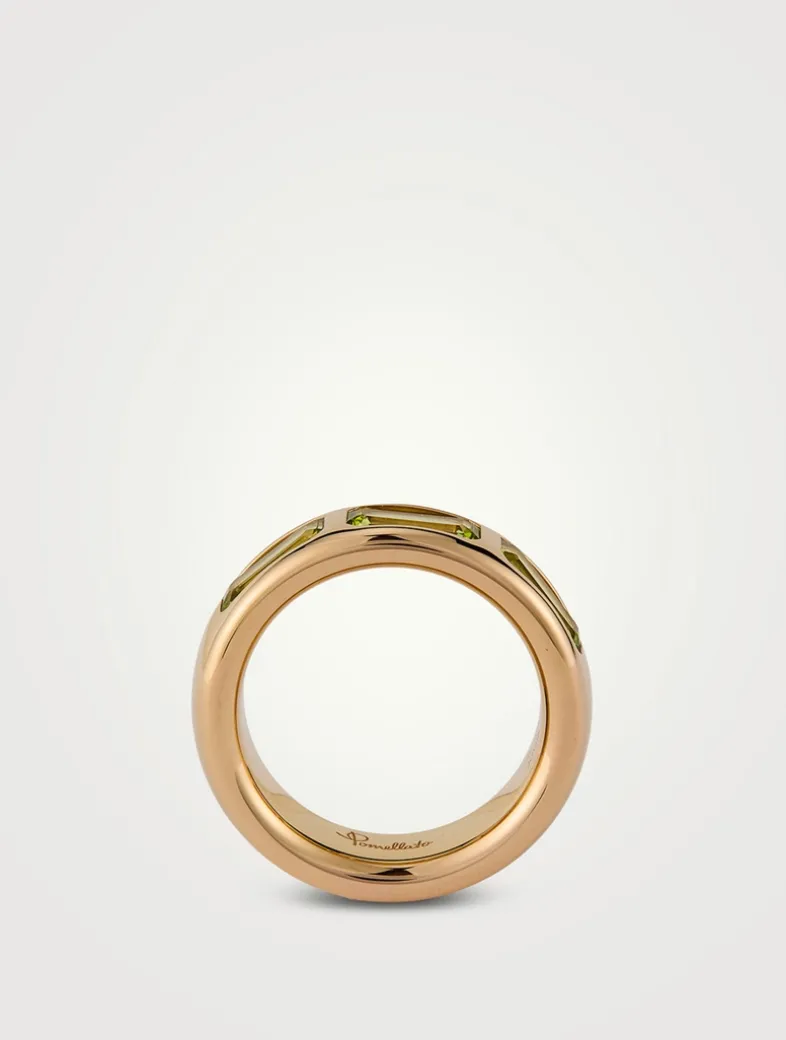 Exhibiting half a century of savoir-faire, the Iconica collection honours Pomellato’s fine goldsmithing skills and Milanese roots. Designed with rounded edges, this wide band is inlaid with vibrant gemstones in beveled settings.