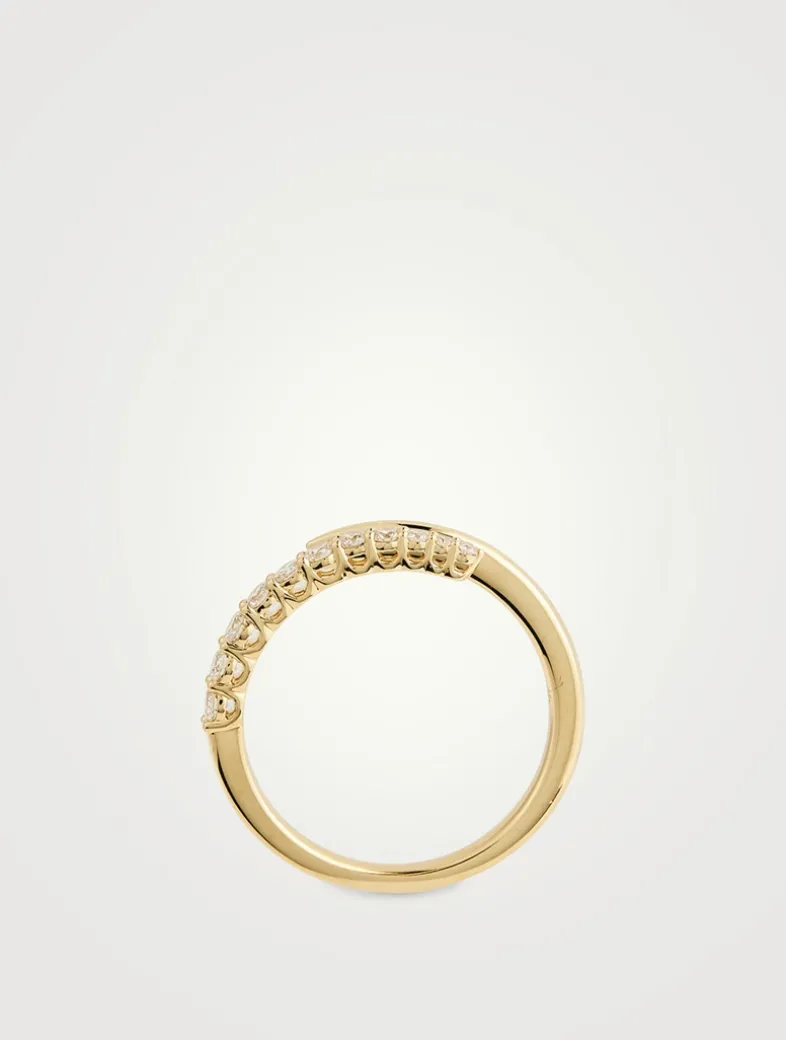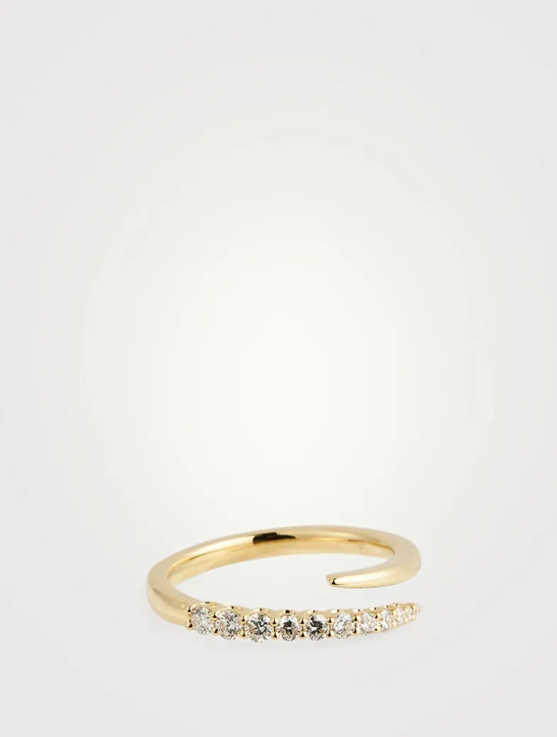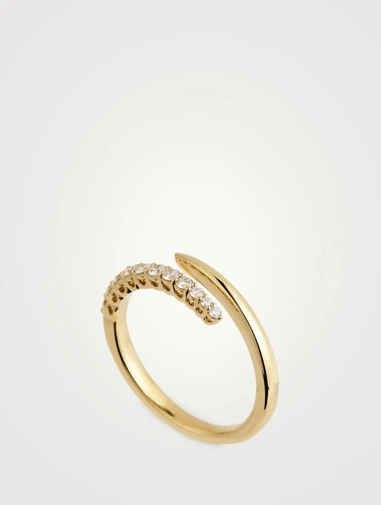 A classic essential jewellery piece, this polished, wraparound ring is tipped with graduating diamonds.