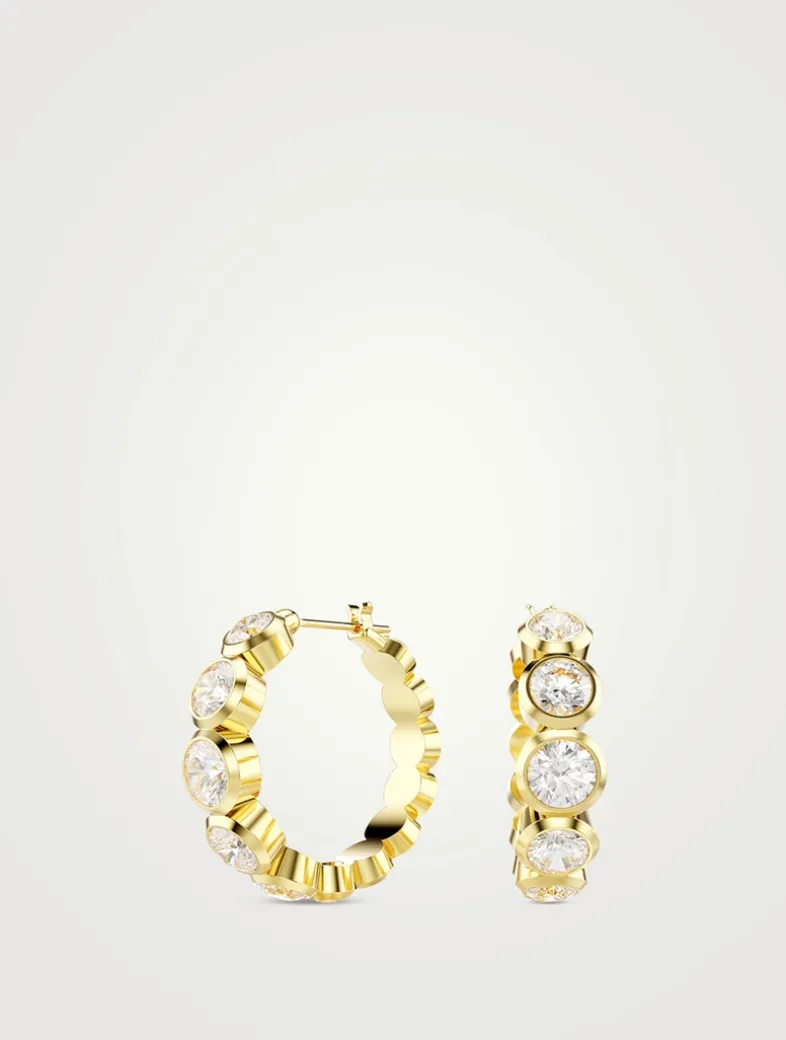 These gold-tone plated earrings are masterfully crafted with a circle of round-cut Swarovski Zirconia, each placed in a modern bezel setting and presented in a gradient of sizes.