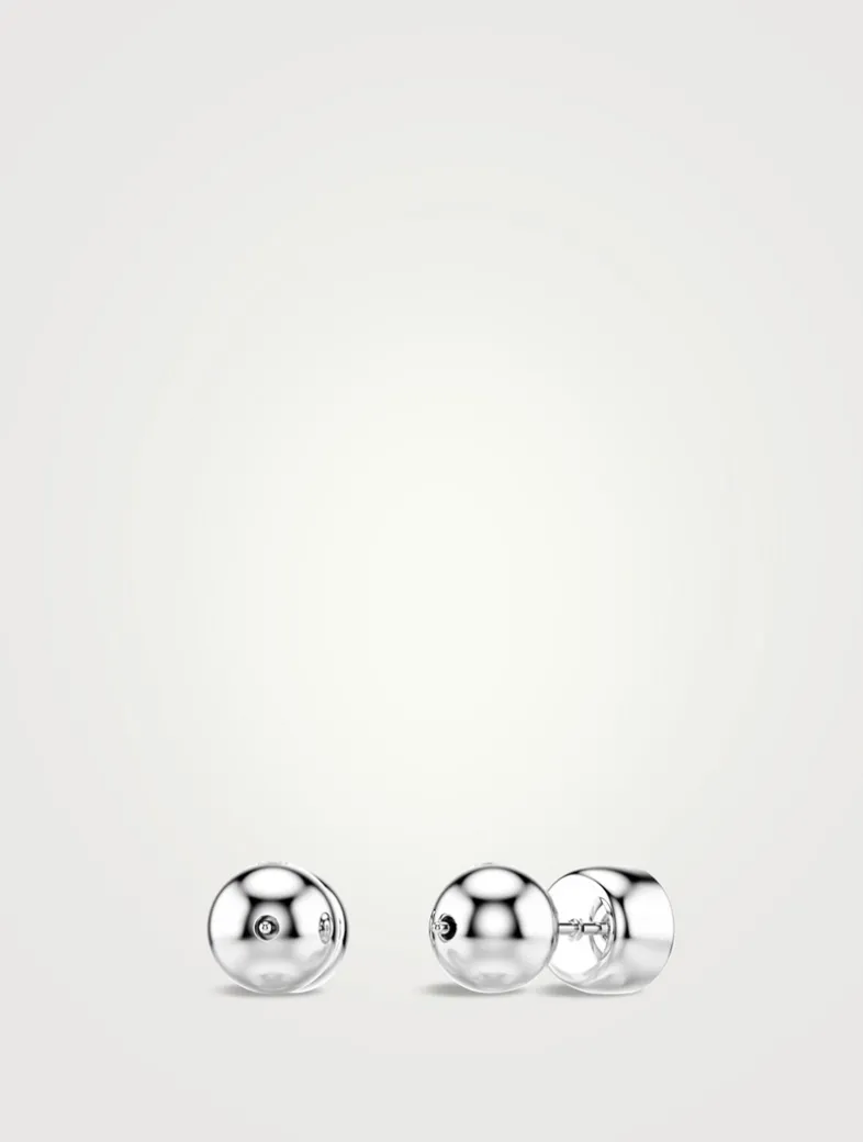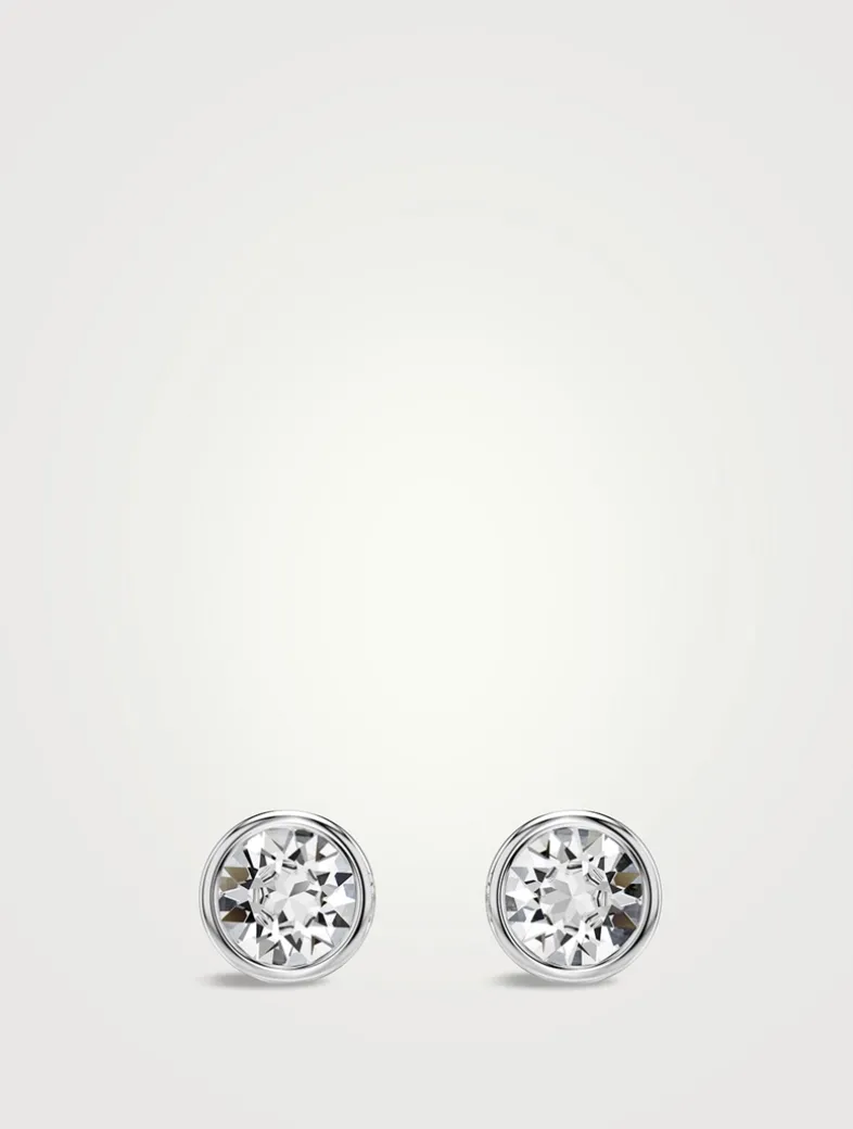 These refined pierced studs are a sublime example of Swarovski’s expert faceting. Each rhodium plated piece features a round-cut crystal in a puffy bezel setting.