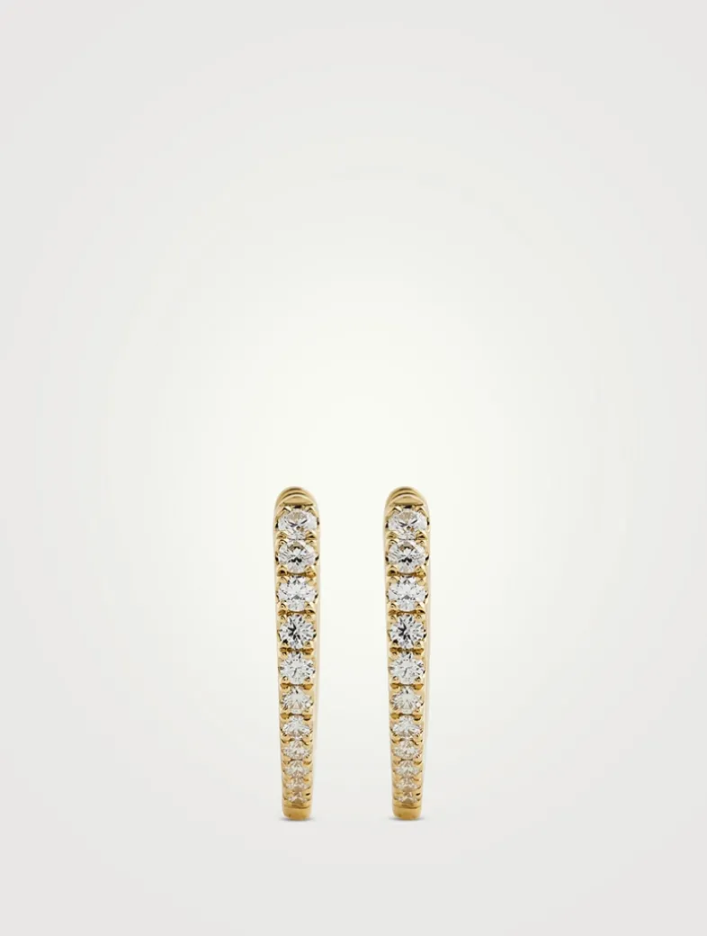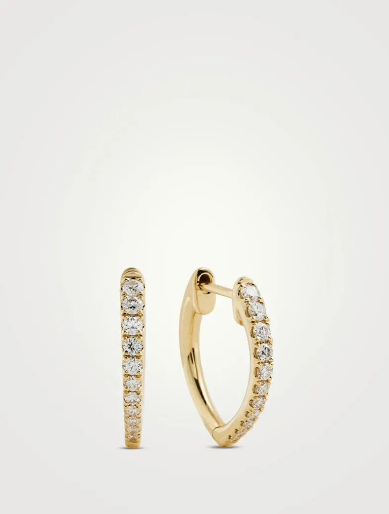 Trimmed with graduating diamonds, MEMOIRE’s commitment to outstanding quality and craftsmanship is showcased in each of these oval-shaped huggie hoops.