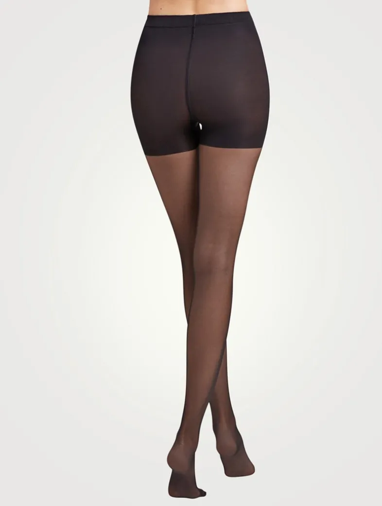These tights are impressive with their even look. The shaping panty section enhances the waist, legs and bottom, and is the perfect support for wearing under slim-fitting clothes. The comfortably soft knitted waistband ensures a perfect fit. Reinforced toes for increased durability.