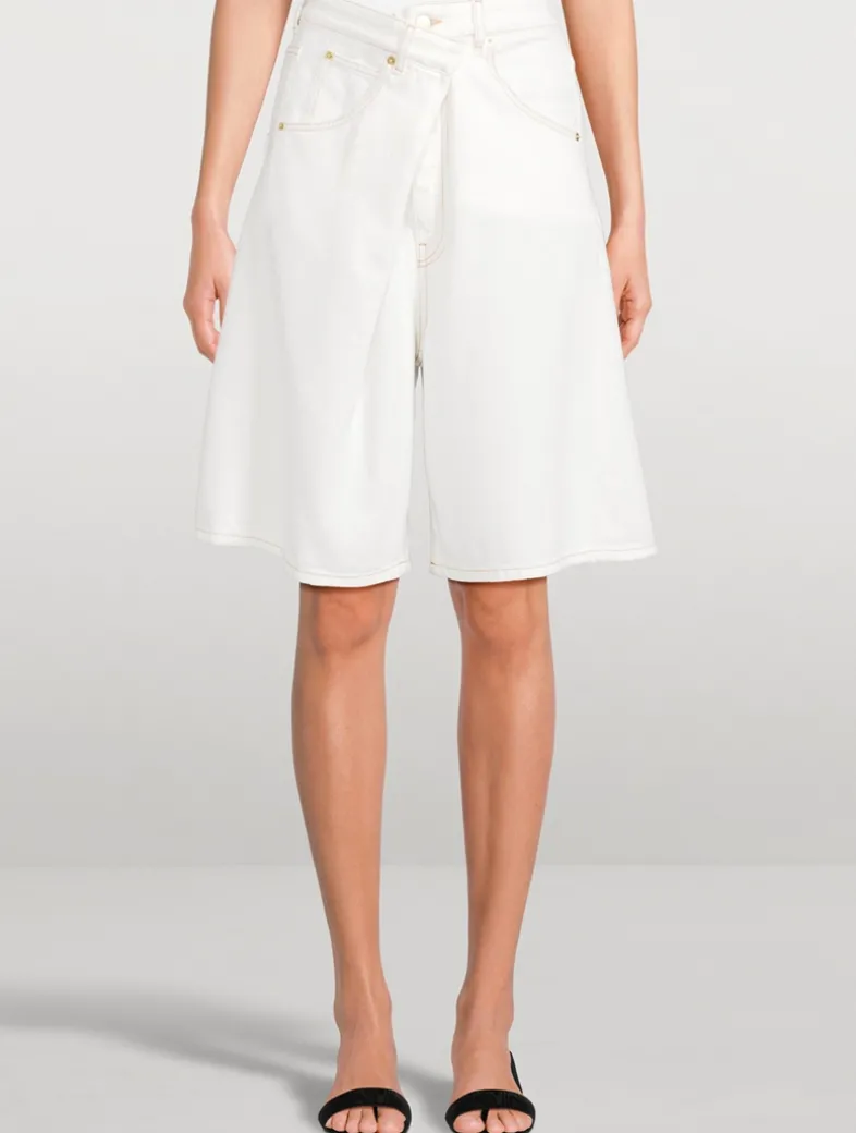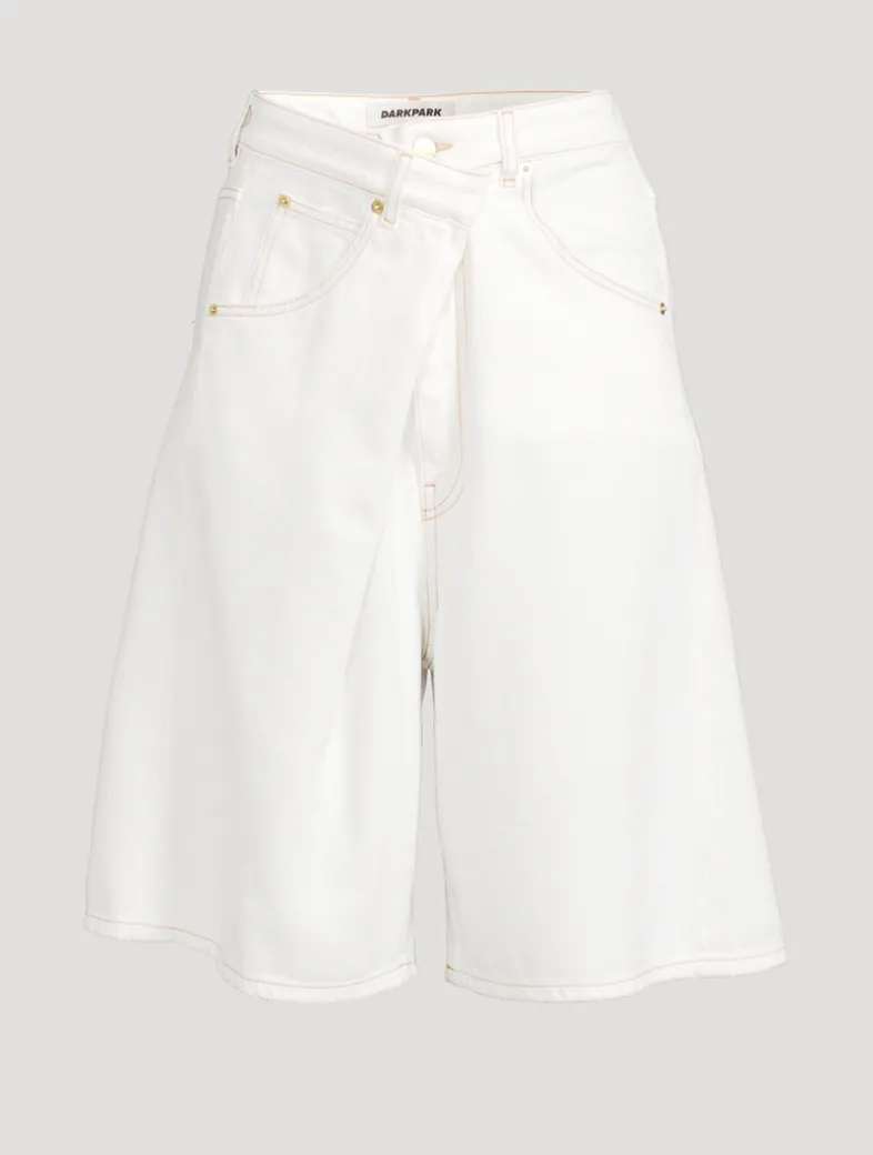 Featuring a surplice waist, and un ultra-wide leg silhouette, these baggy jean shorts are finished with a signature cut-out back patch detail.