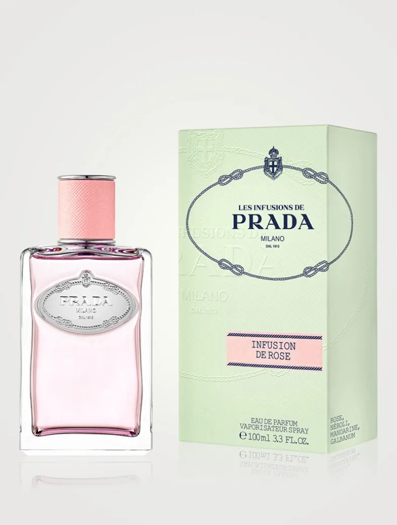 Infusion de Rose Eau de Parfum captures Prada’s contemporary vision of a luxurious rose. This made-in-Italy fragrance comes in a bottle that reflects Prada’s sophistication, blending Rose top notes with fresh Neroli base notes and vibrant Mandarin heart notes elevated by galbanum.