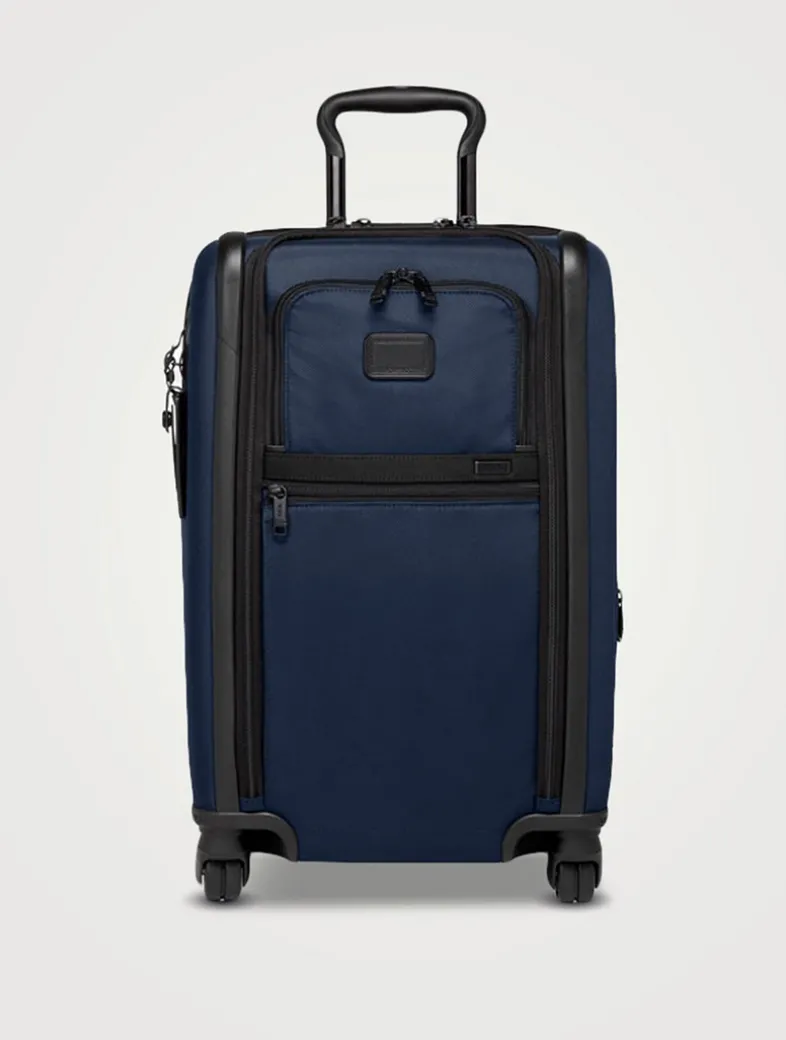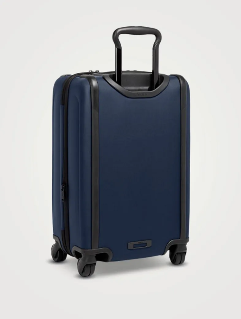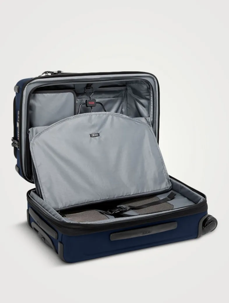 This FXT® ballistic nylon carry-on brings together innovation, superior performance, and best-in-class functionality. Its exterior features multiple zip pockets, retractable top and side grab handles, bottom grab handle, four dual spinner wheels, and built-in USB port. The interior has a hanging mesh zipper pocket with removable USB cable, a removable garment sleeve with fiberglass rod, hanger bracket, and multiple zippered pockets.