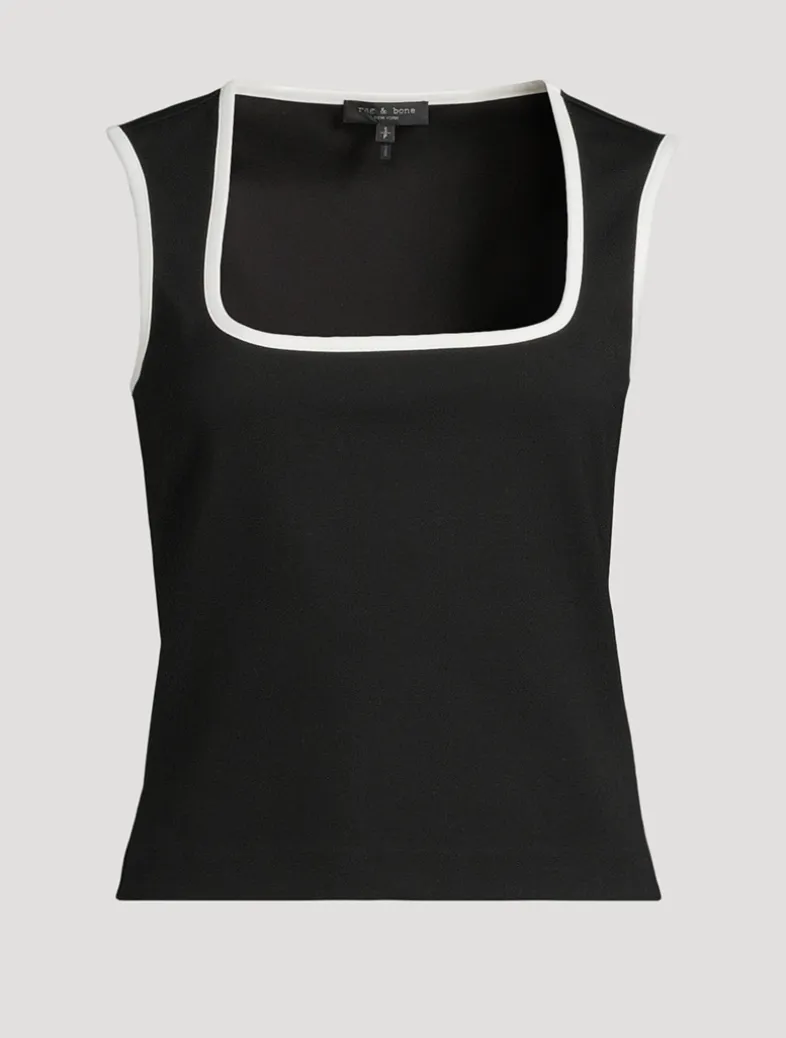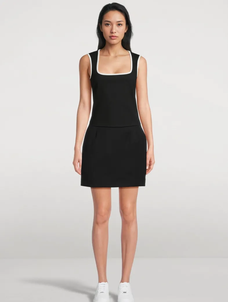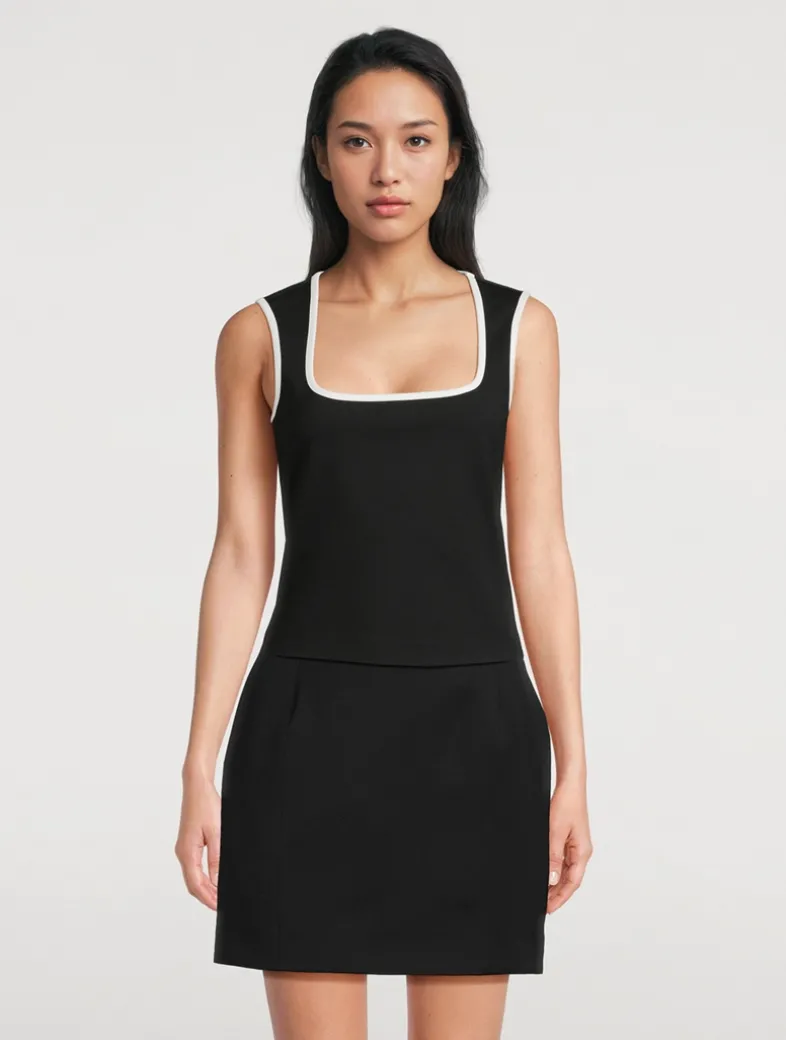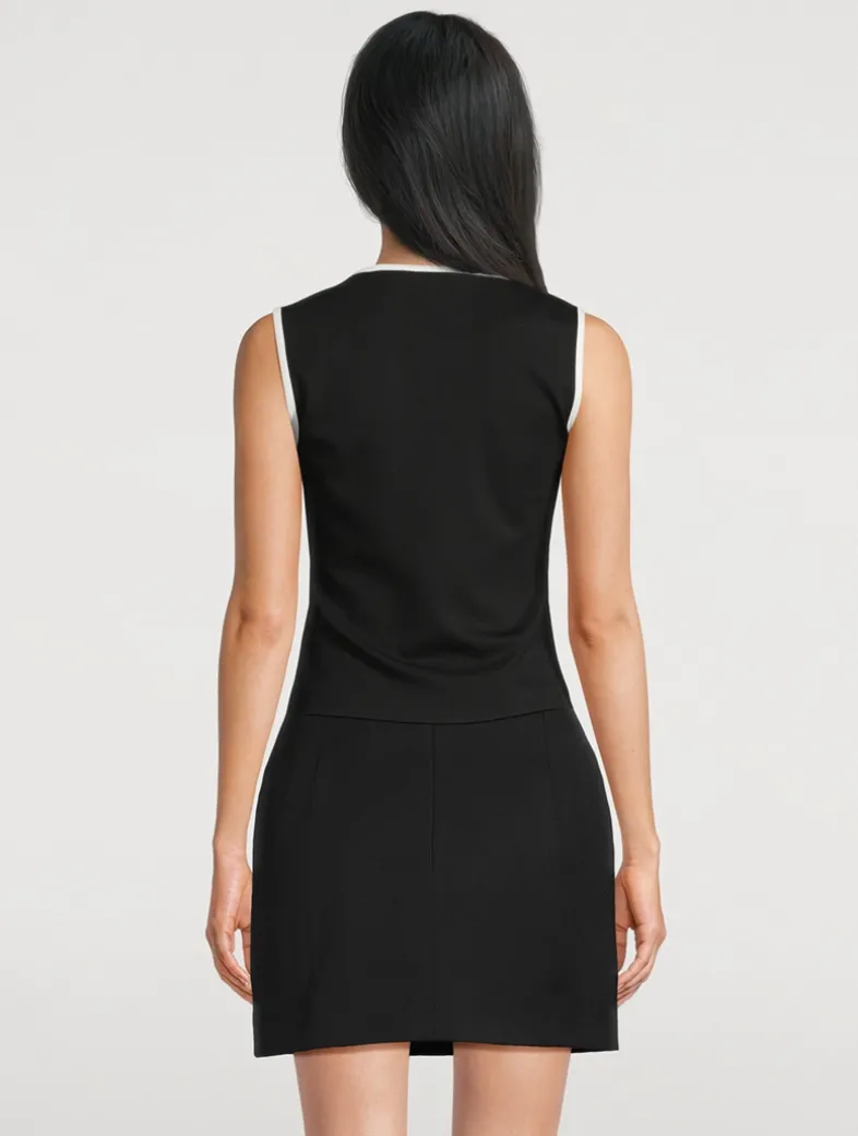 This tank is tailored from ponte fabric, a stretch knit which balances structure and ease for a polished look. The slim fit and curved contrast trims give it a sleek and sporty feel.