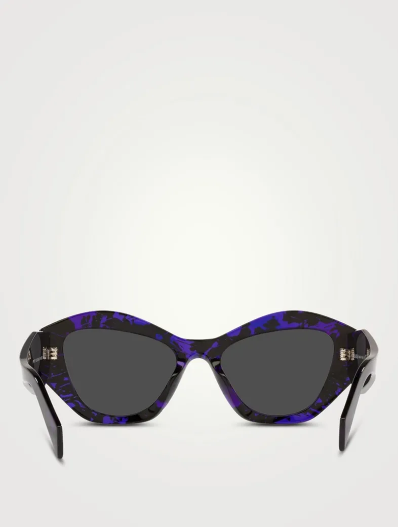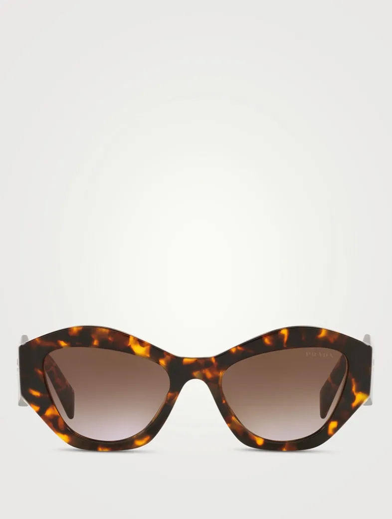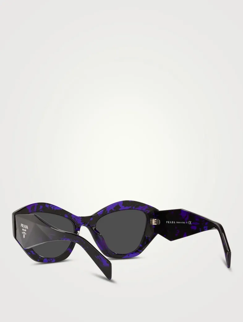 Made in Italy, these bold frames are characterized by its geometric design with the feminine touch of a cat-eye silhouette. The frames are finished with three-dimensional temples decorated with the traditional triangle PRADA logo.