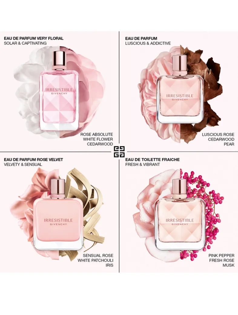 Discover Irresistible Eau de Parfum, a floral-woody fragrance that balances notes of luscious rose with radiant blond wood. An irresistible perfume, sparkling pear and ambrette add a subtle hint of vibrancy. With a floral heart and a touch of musk at the base, this effervescent scent symbolizes a carefree woman with a strong magnetic charm. Irresistible Eau de Parfum is an invitation to let go, dance, and reveal who you truly are.
