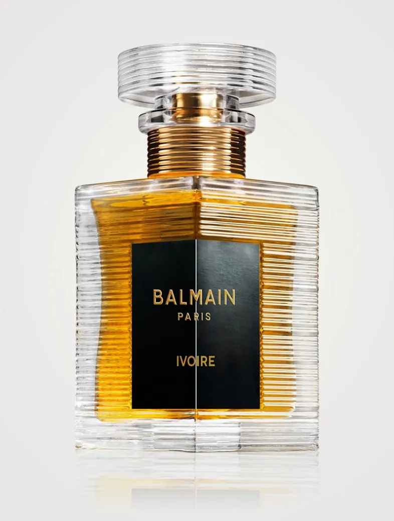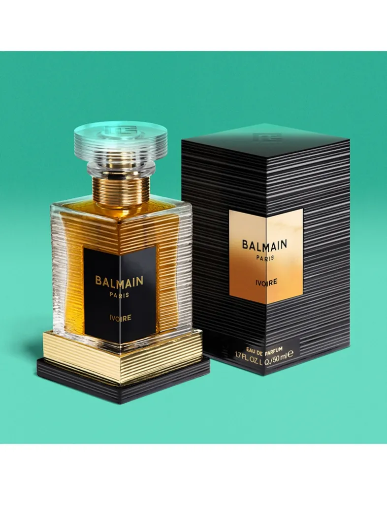 About the Bottle: In its crystal-like transparent bottle, the new bottle design takes inspiration from the 1946 Balmain Élysées 64-83. It retains the unique striated collar and 90-degree angle label, while adding dimension to the new lozenge shape with a signature rayure Balmain and PB monogram.