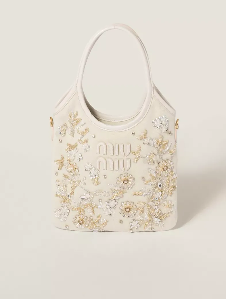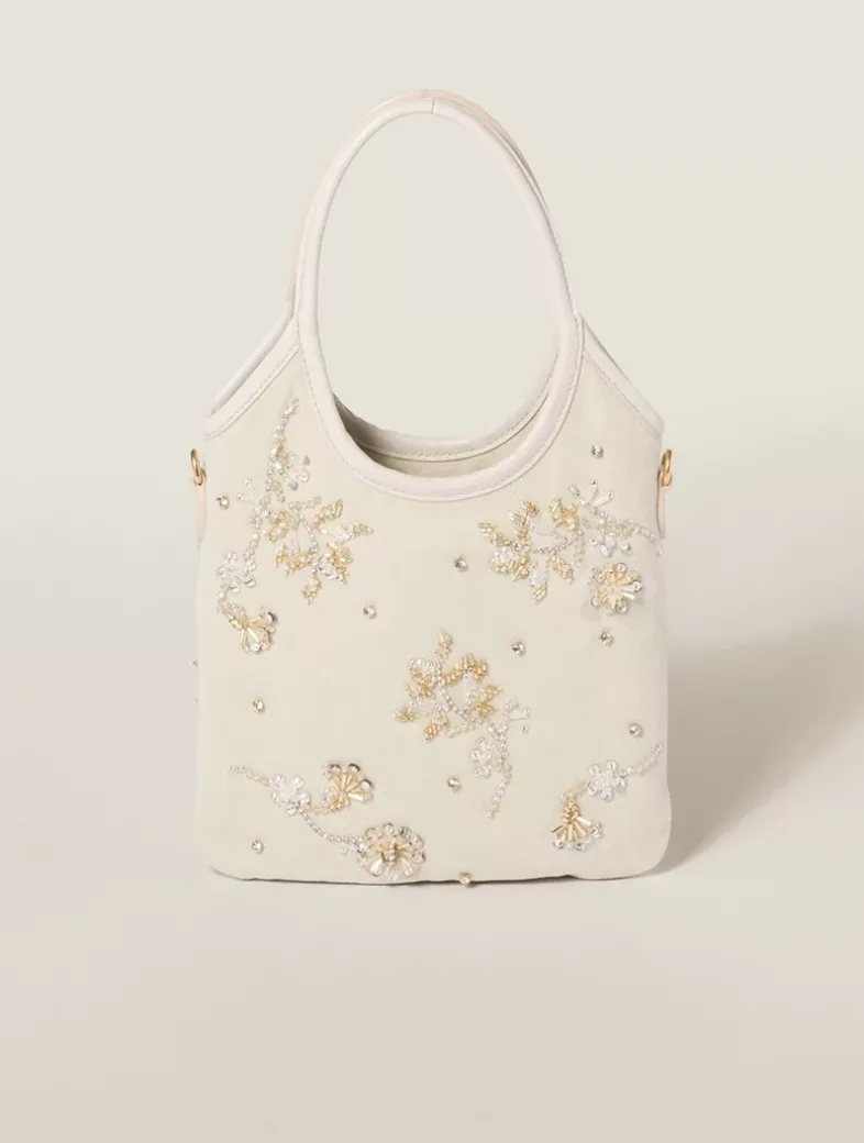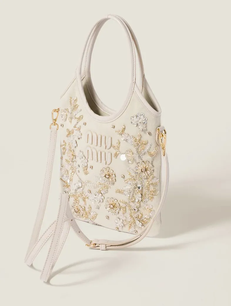 With floral embroidery Leather handles Detachable, adjustable leather shoulder strap. Maximum length 115 cm – Minimum length 105 cm – Maximum drop 66 cm – Minimum drop 62 cm Gold-tone/steel hardware Cotton gabardine lining with patch pocket Leather lettering logo