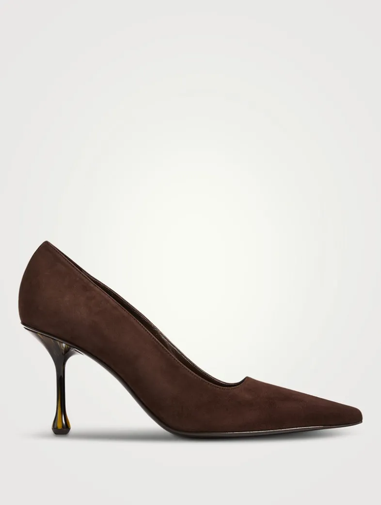 Crafted from suede, the Ixia elevates the classic pump with a contemporary drop heel and square-cut vamp.