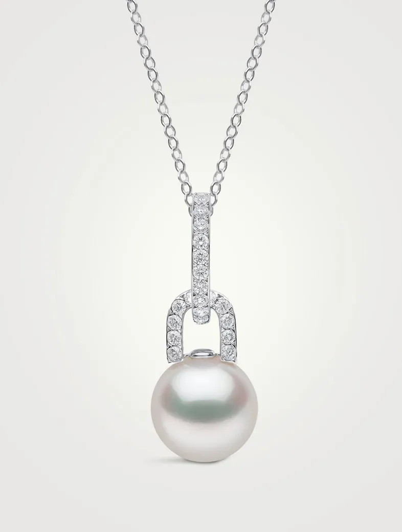 Introducing the Diamond Pendant from the Jazz collection. Crafted in 18k white gold with diamonds and white Australian South Sea pearls. The fluid design exudes elegance and sophistication.