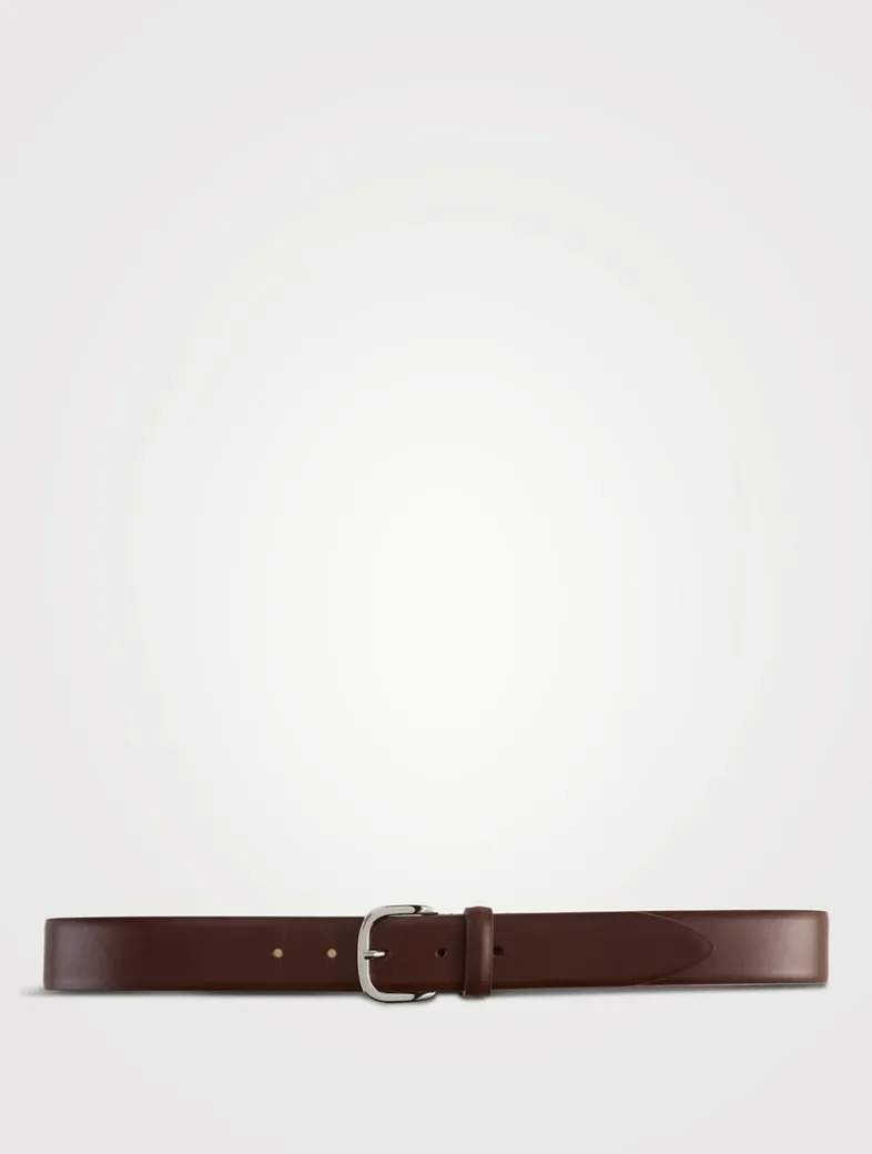 Designed with clean lines, this belt is handcrafted in Italy from semi-gloss leather and features an understated buckle. The 1.5-inch width is ideal for wearing through all sizes of belt loops, ensuring a seamless and stylish fit. The leather is sourced from Italy and certified by the Leather Working Group (LWG).