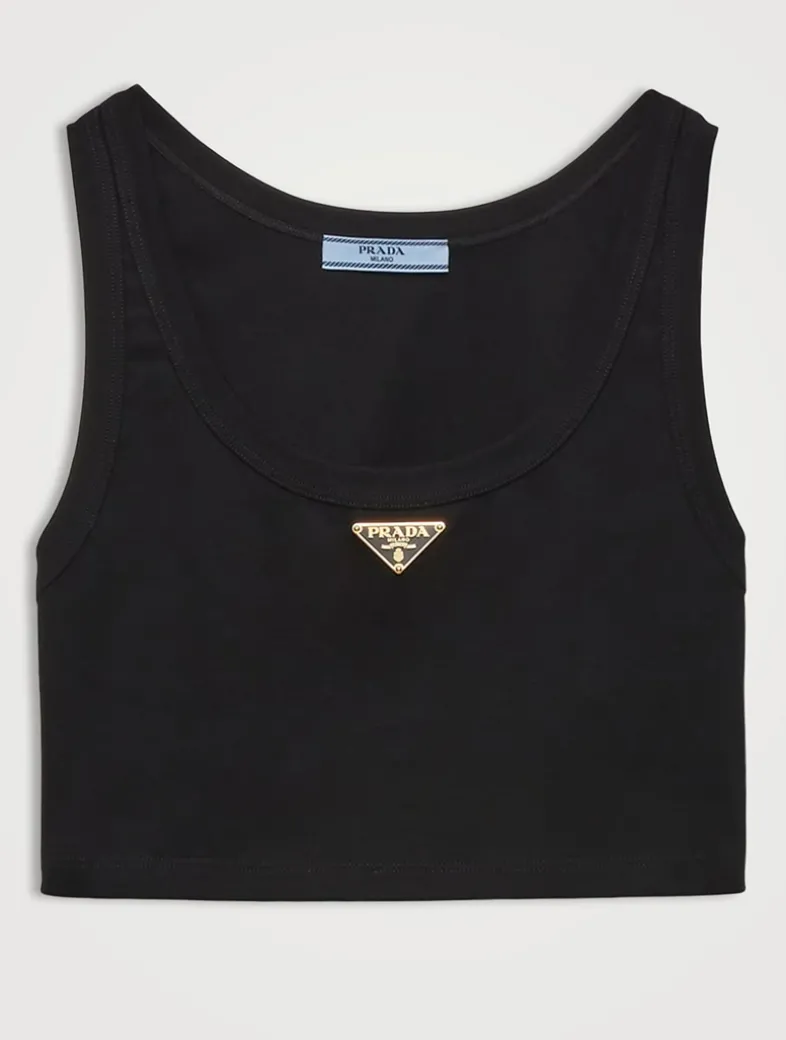 Cropped fit Ribbed knit Scoop neck Enameled metal triangle logo