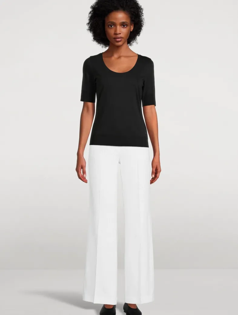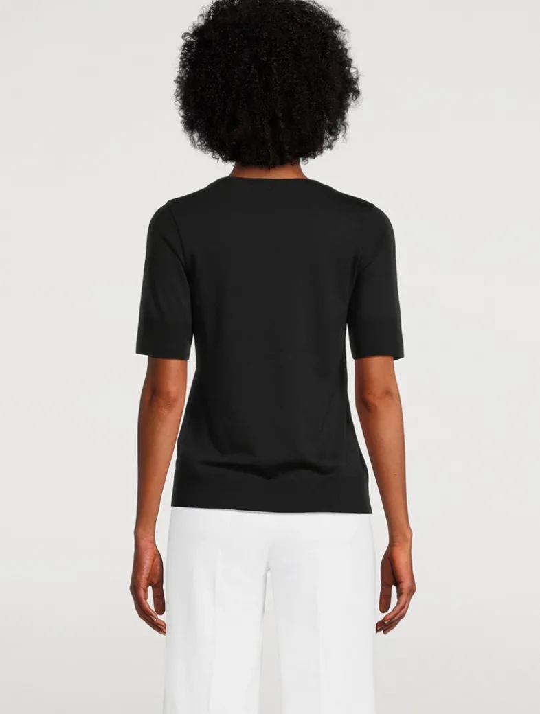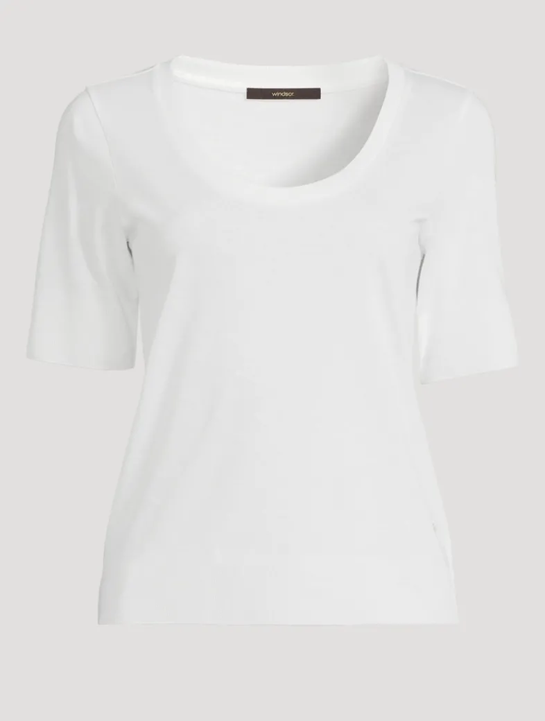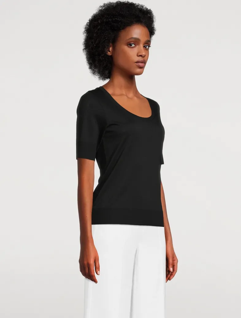 The blend of Tencel and cotton marks out this shirt as a comfortable all-rounder. The modern design features a deep, round neckline and ribbed cuffs on the short sleeves and hem. The metal logo badge adds a fine accent.