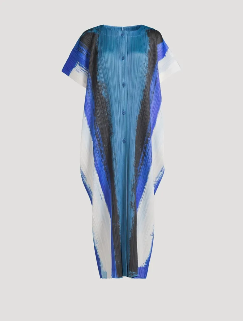 The dynamic print of Jump evokes the energy and motion of a powerful leap. This long pleated piece features exaggerated sleeves, a round neckline, and front button fastenings.