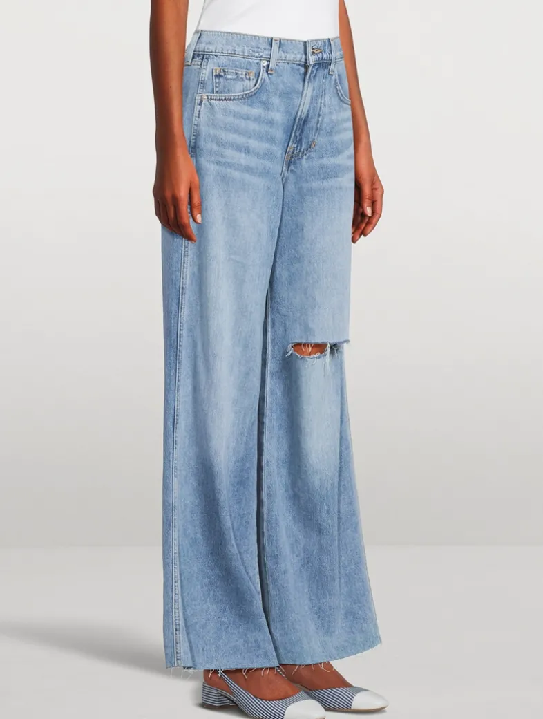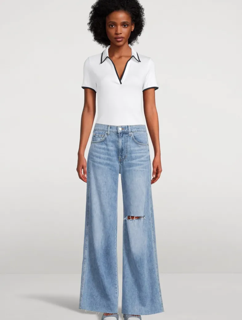 Consider Kasey the essential wide-leg jean in mid-wash denim, expertly designed in LA from Veronica Beard’s soft Dream Denim fabric—a premium cotton-silk blend offering a soft touch and effortless drape—with a mid-rise waist, full-length leg, and raw hem for an edgy yet polished feel.