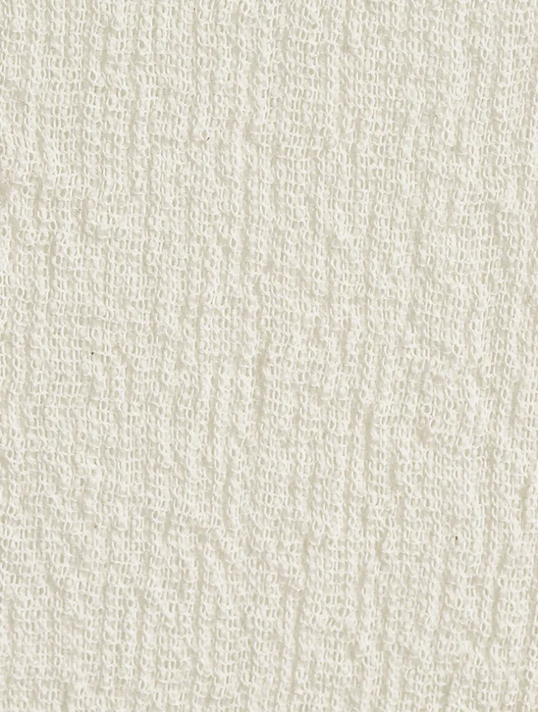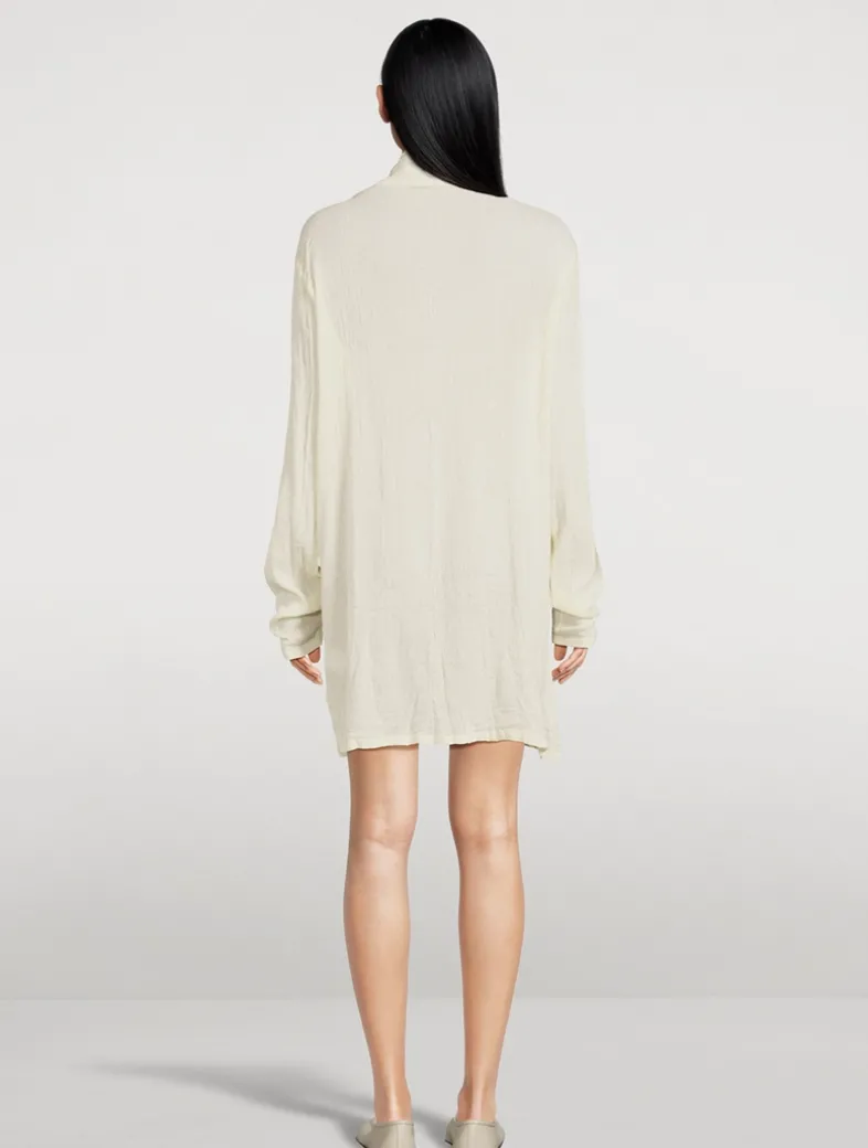 Karami Wool features intricately woven fabrics with delicate transparency, allowing colours to be seen through when worn layered. Made from strong wool and cotton yarn, these fabrics are both delicate and translucent while being resistant to wrinkling. The collection includes willow fabric that molds to the body over time and can be easily restored to its original size through washing. This long-sleeve tunic has a relaxed, comfortable fit and a slouchy neckline.