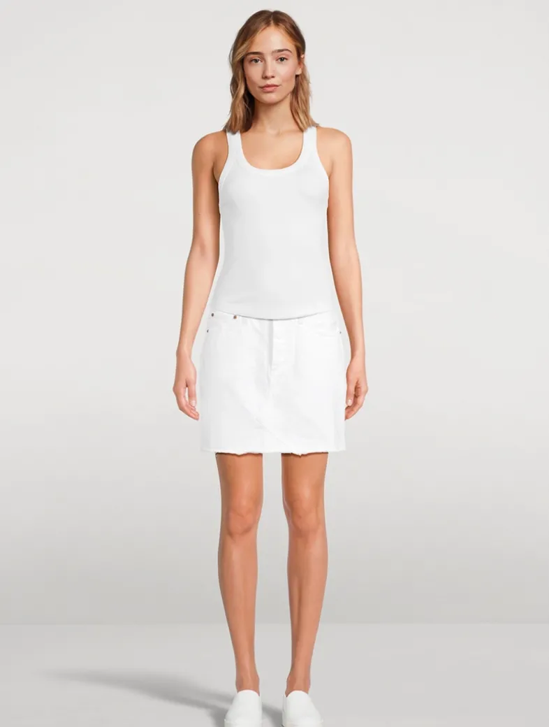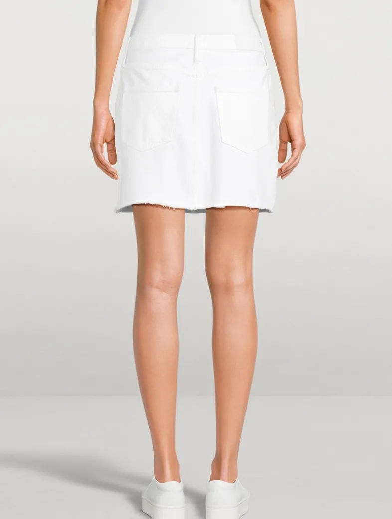 The high rise of this denim mini skirt is super flattering, while the five-pocket design is practical and stylish and the raw hem adds a touch of modern cool.