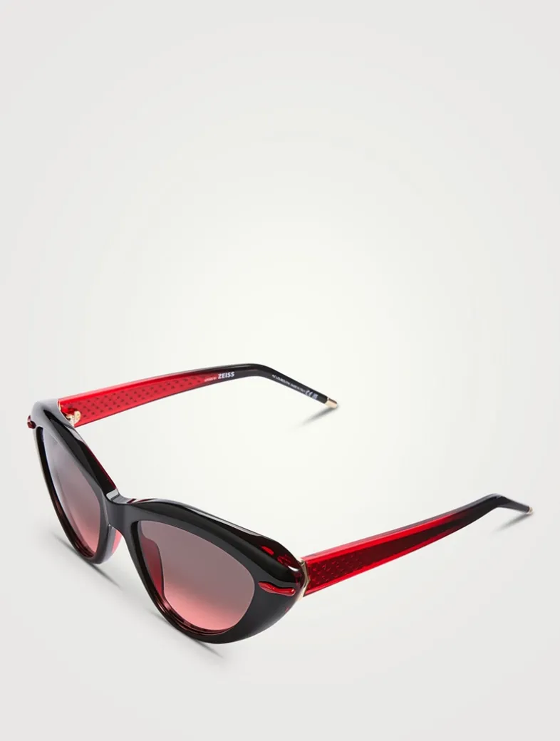 Inspired by the iconic shape of the Louboutin red sole, these frames feature a sculpted frontal profile with architectural curves that evoke the elegance of timeless landmarks. Enhanced by Art Deco influences, the design includes crafted metal temples embellished with a palmette pattern and Zeiss lenses, offering exceptional comfort, durability, and a bold yet sophisticated statement.