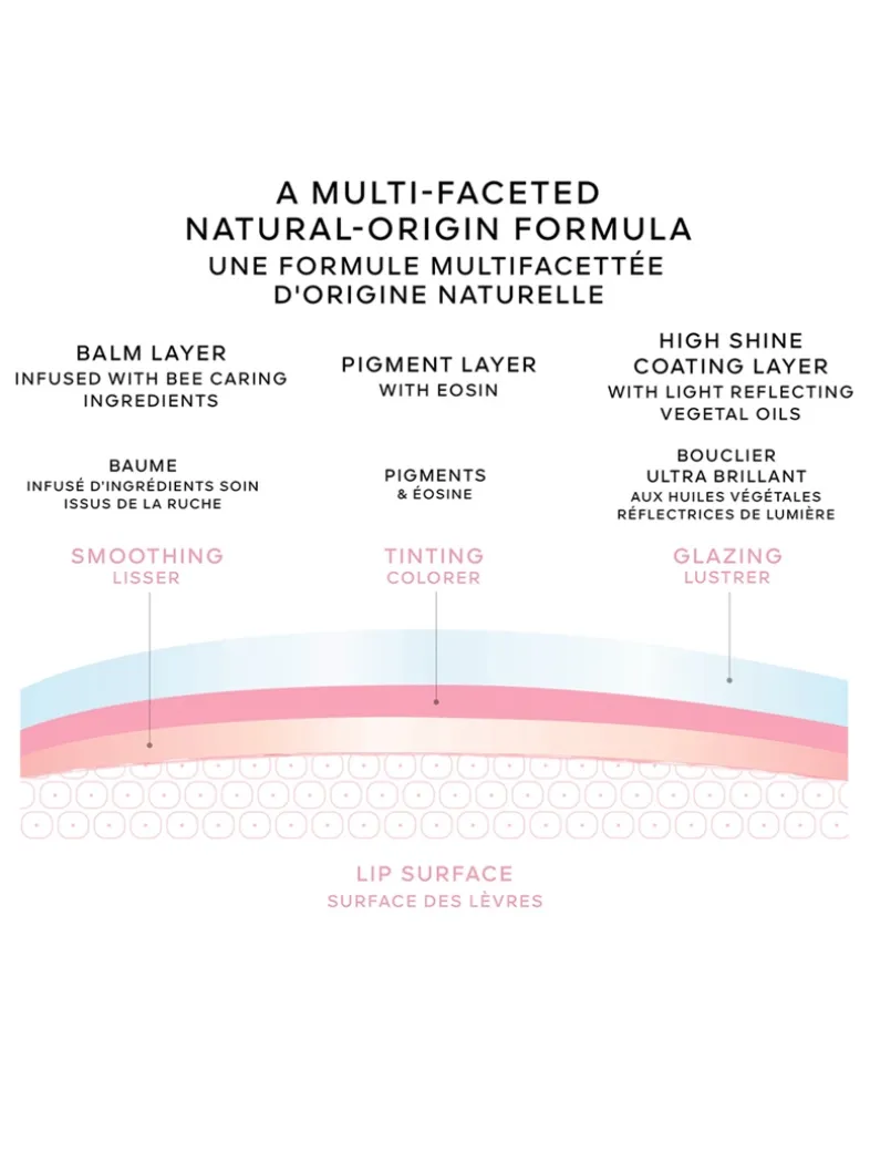 KissKiss Bee Glow Oil comes in 6 syrup shades which pair perfectly with the KissKiss Bee Glow tinted caring balm shades, including its 3 star hues: 258 – Rose Glow: a delicate pink suitable for all complexions and styles. 775 – Poppy Glow: a poppy red for a deeply sensual, bitten lip effect. 809 – Lavender Glow: a radiant plum, the most daring and fashionable choice. Each shade in the KissKiss Bee Glow Oil range beautifully enhances lips with high shine, reviving them with a natural, made-to-measure shade.