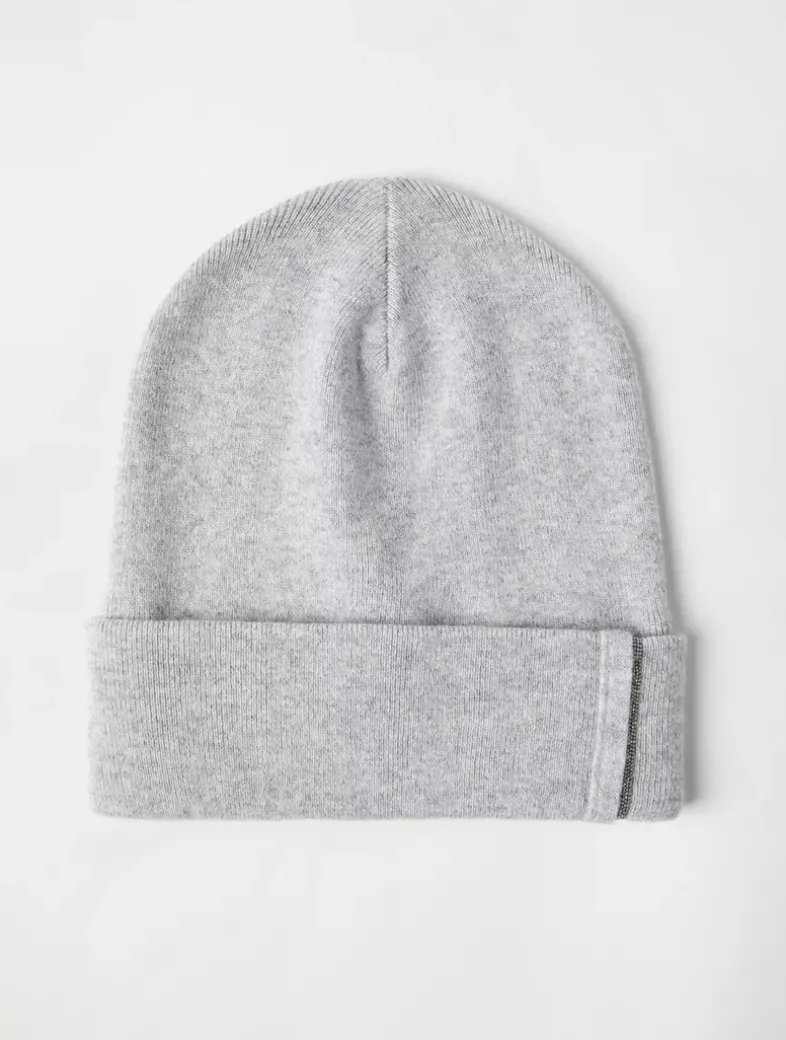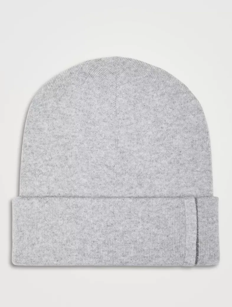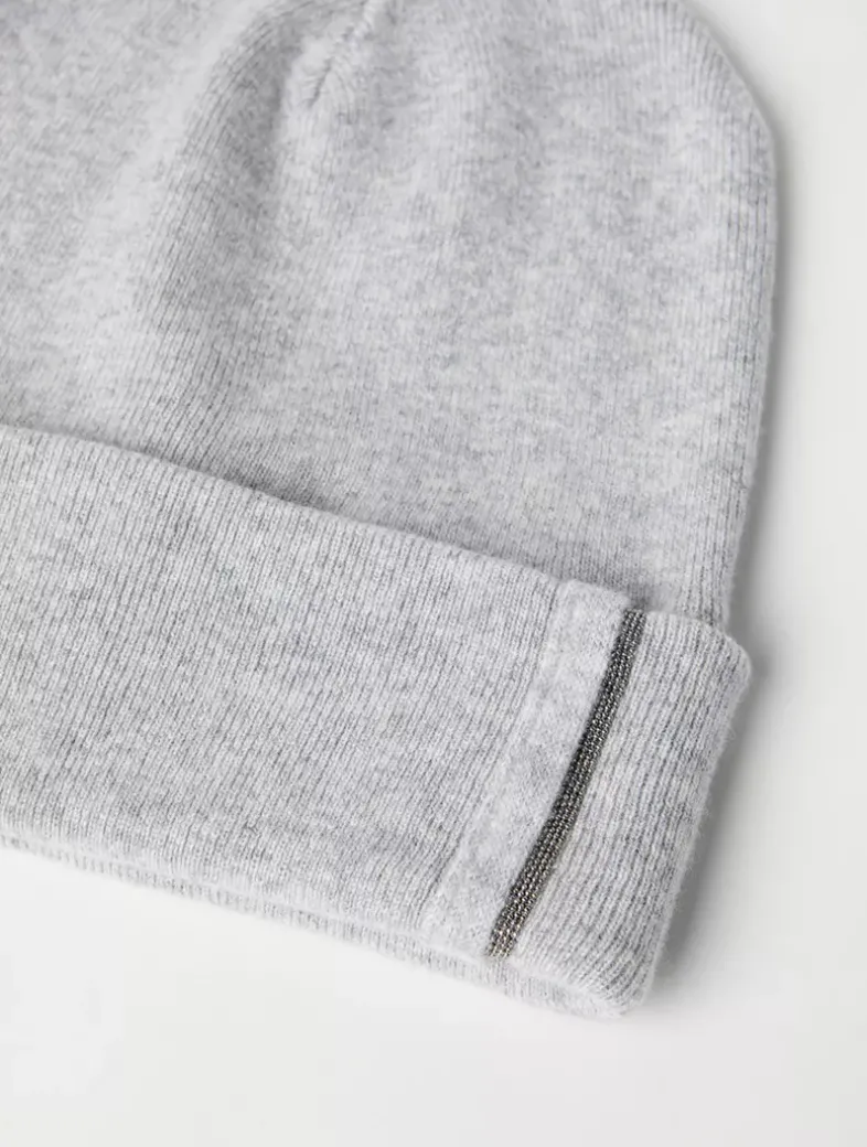 Cashmere rib knit beanie with monili