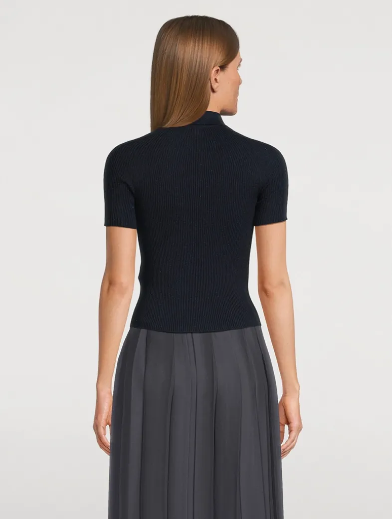 In a form-fitting ribbed knit, this polo shirt is a sophisticated take on the menswear classic. The Johnny collar and slightly cropped length keeps the design minimal and modern.