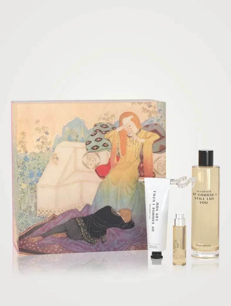 Of Course I Still Luv You, a signature Selahatin scent, takes centre stage in La Cérémonie Of Course I Still Luv You. Discover its captivating aroma through a luxurious collection of mouth care products—including whitening toothpaste, mouthwash, and Eau d’Extrait Oral (oral spray), along with a stainless steel toothpaste squeezer shaped as Selahatin’s signature ‘S’.