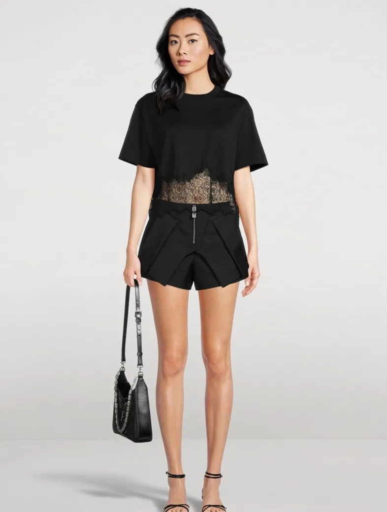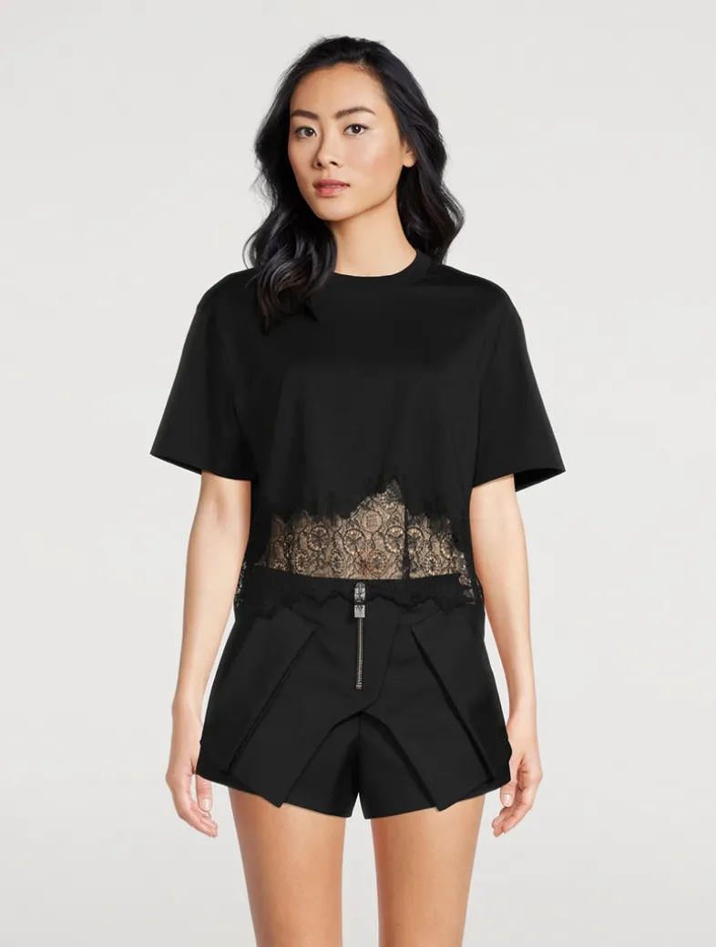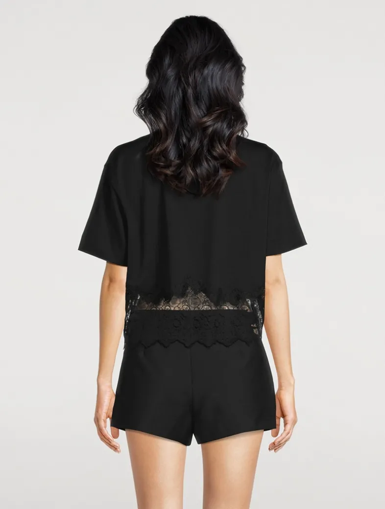 The classic look of this short-sleeve cotton tee is elevated with delicate floral lace trim with scallop detailing around its cropped hem.