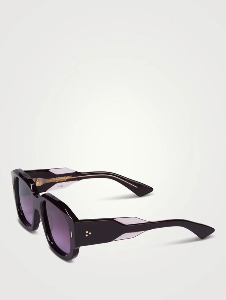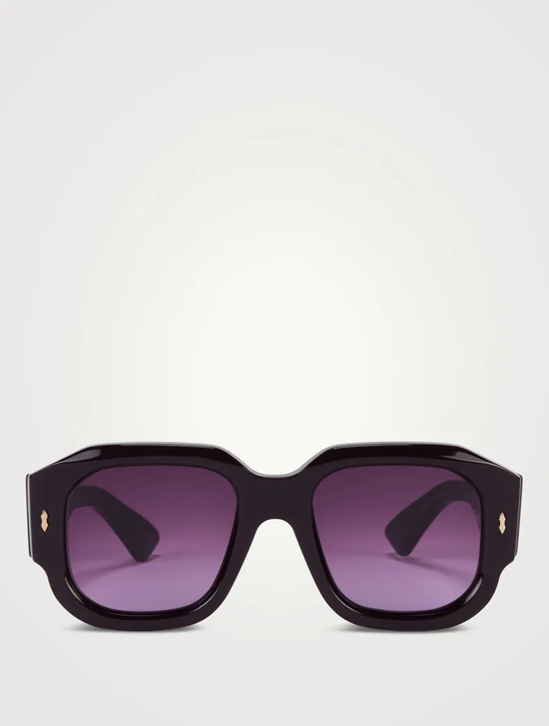 Playful and bold, these oversized geometric frames are finished with signature double arrowhead details and exposed wirecore.