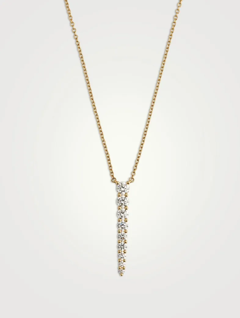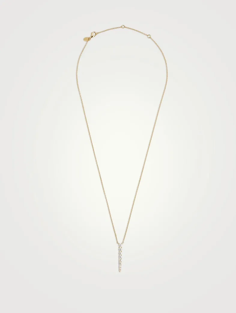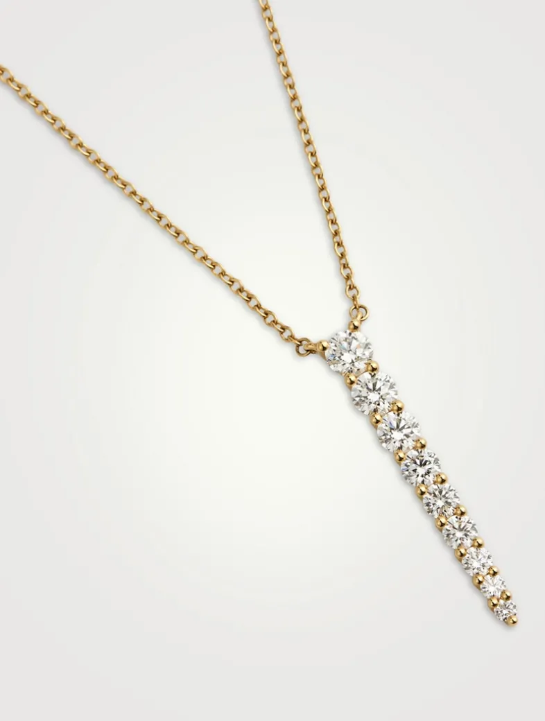 An illustration the brand’s dedication to craftsmanship and quality, this adjustable chain necklace features a delicate pendant of graduating diamonds.