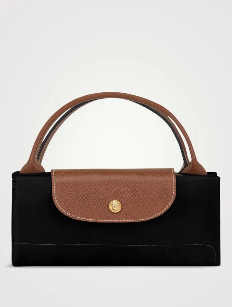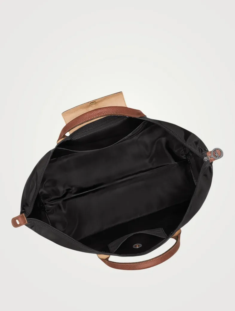 Iconic and world famous, Le Pliage draws its genius from origami. The flap and handles of this roomy weekender are presented in Russian leather, while its ears and its snap closure make it recognizable at a glance. Crafted from coated canvas, it is finished with two interior slip pockets.