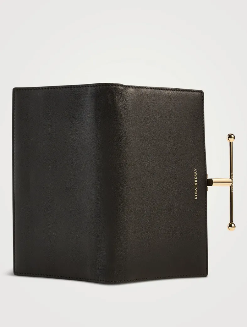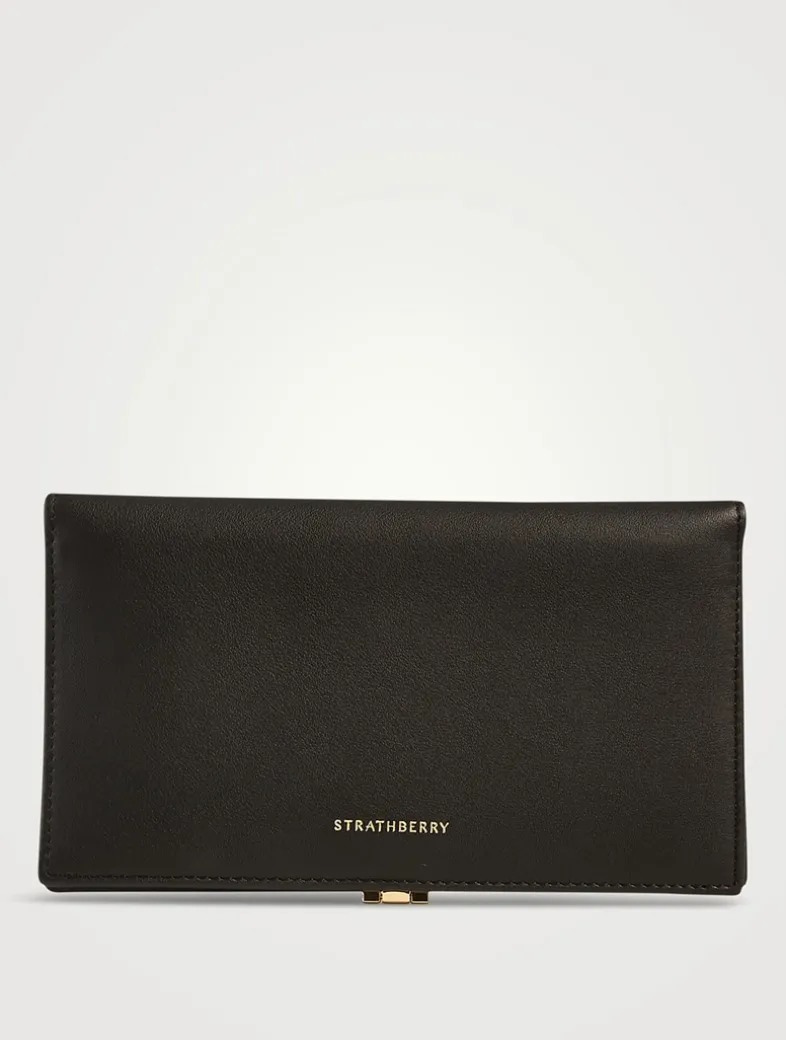 A true statement piece, the Large Melville Street Wallet features the instantly recognizable signature Strathberry bar, which functions as a secure lock. Handcrafted in Spain from smooth calf leather to a rectangular shape, it unfolds to reveal two flat interior compartments, eight card slots, and a zipped coin pocket with a leather pull.