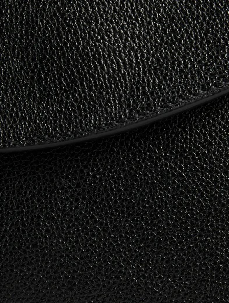 The T-Bar Sling bag is asymmetrical and handcrafted from a single piece of grainy calf leather with a side gusset for extra capacity. Can be worn crossbody using the adjustable leather strap. It is detailed with a statement T-Bar buckle engraved with the McQueen logo. Featuring one central zip compartment with card slot and metal D-ring.