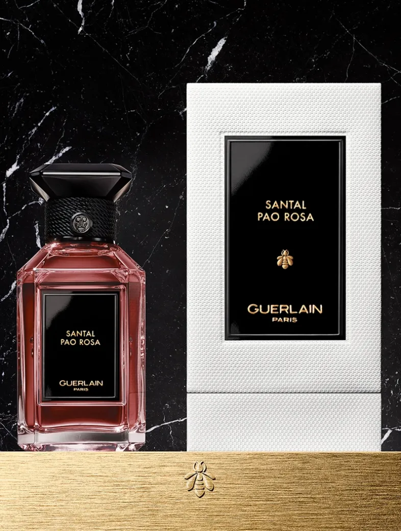 Santal Pao Rosa borrows its name from Guerlain’s heritage, with Pao Rosa being the name of a fragrance composed by Aimé Guerlain in 1877 and evoking an encounter between wood and rose.